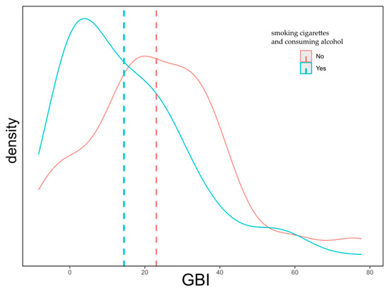 Distribution of responses on the GBI scale according to cigarette smoking and alcohol consumption.
