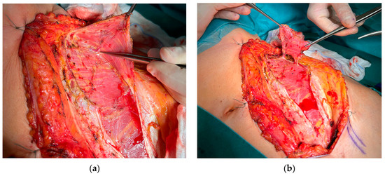 There have been many publications regarding musculocutaneous perforators and their anatomical variations. Bergeron et al. found DCIA perforators in 92% of cases and presented their anatomy. The transverse branch of the DCIA, which lies along the iliac crest between the transversus abdominis muscle and the internal oblique muscle, sends one or two musculocutaneous perforators to the overlying skin before its main trunk anastomoses with the lumbar or iliolumbar arteries. Perforators were located on the superior aspect of the iliac crest, 5 to 10.5 cm posterior to the ASIS. According to Bergeron, the DCIA perforator should be located with a Doppler probe in a 4 × 6 cm rectangular area on the superior aspect of the iliac crest, 5 cm posterior to the ASIS [18]. Safak et al. found a series of musculocutaneous perforators in 70% of dissections and a single dominant perforator in 30% of dissections [3]. Similarly, other authors found dominant musculocutaneous perforators in 70% of cases and they were located mainly 1–3 cm above the iliac crest and 3–6 cm posterior to the ASIS [3,4,9]. Zheng et al. divided the course of the deep iliac circumflex artery into three segments—the inguinal segment, the medial-to-crest segment, and the superior-to-crest segment—with three types of DCIA perforators leaving from corresponding segments: the abdominal muscular branches, the iliac osteomuscular branches, and the terminal musculocutaneous perforator. They described a DCIA perforator flap with skin flap modification based on the terminal musculocutaneous perforator of the DCIA [19].