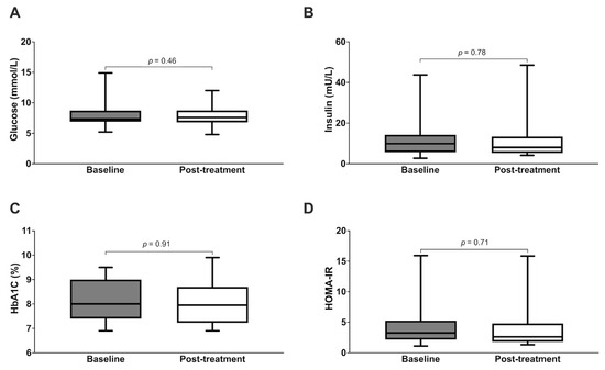 - Matthews, D.R.; Hosker, J.P.; Rudenski, A.S.; Naylor, B.A.; Treacher, D.F.; Turner, R.C. Homeostasis model assessment: Insulin resistance and beta-cell function from fasting plasma glucose and insulin concentrations in man. Diabetologia 1985, 28, 412–419. [Google Scholar] [CrossRef]