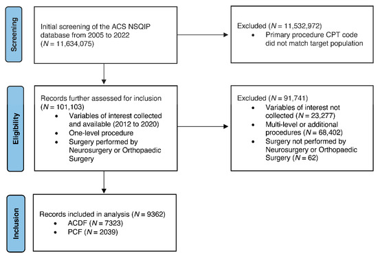 Gujral J, Sussman JH, Gao D, Ghenbot Y, Arena JD, Howard S, Ahmad HS, Shin J, Yoon JW, Ozturk AK, et al. Short-Term Differences in Hospital Resource Utilization and Quality of Care Between Anterior Cervical Discectomy and Fusion and Posterior Cervical Foraminotomy: A National Propensity-Scored Observational Study Utilizing the ACS-NSQIP Database. Journal of Clinical Medicine. 2025; 14(18):6438. https://doi.org/10.3390/jcm14186438