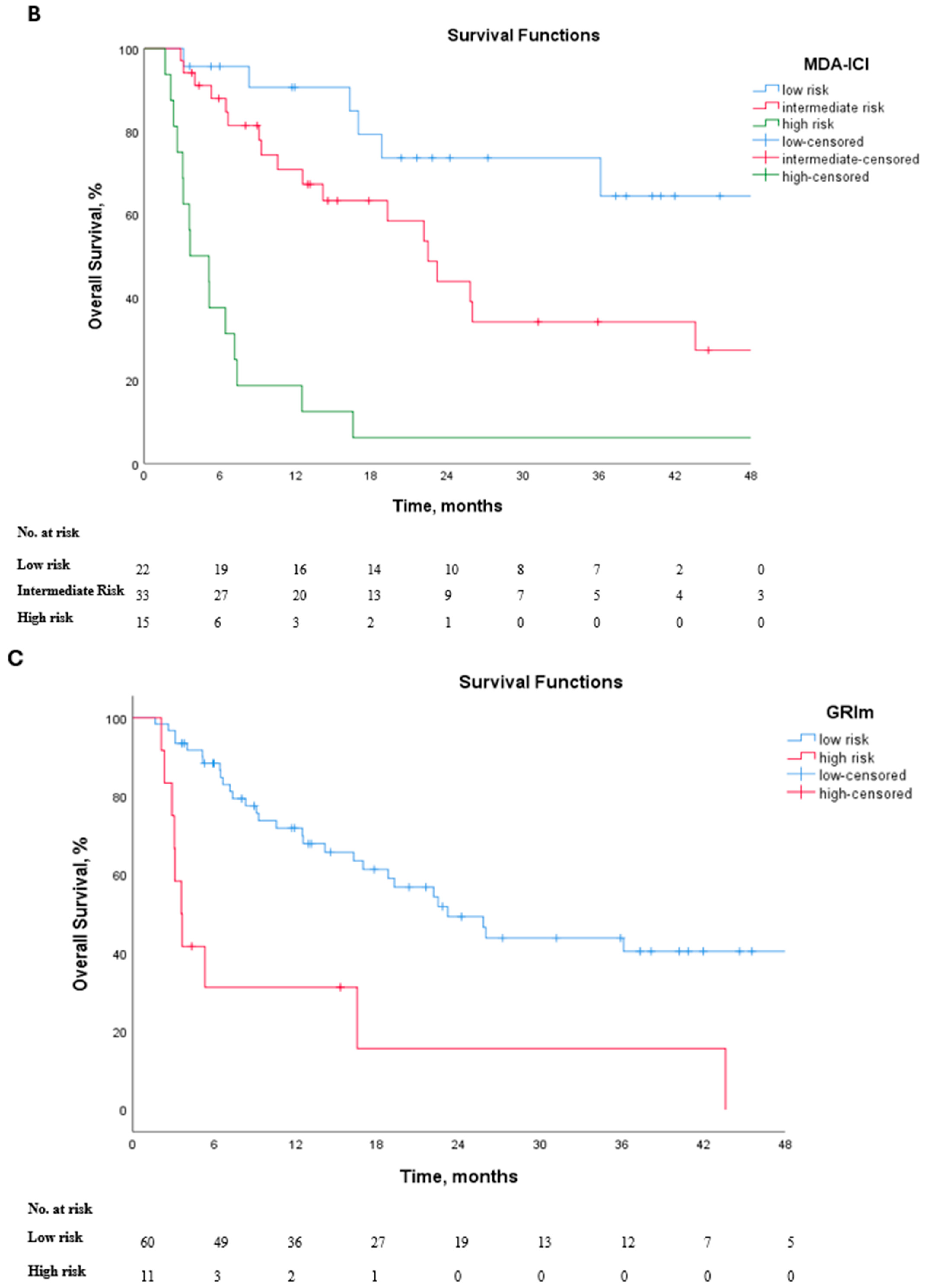 MD Anderson Immune Checkpoint Inhibitor Score (MDA-ICI) | Age > 52 years = 1 point ECOG > 1 = 1 point LDH > 0.75 × ULN = 1 point Platelets > 300 (103/mL) = 1 point ANC > 4.9(103/mL) = 1 point ALC < 1.8 (103/mL) = 1 point Liver metastases = 1 point | 0–2: Low risk 3–4: Intermediate risk 5–7: High risk |