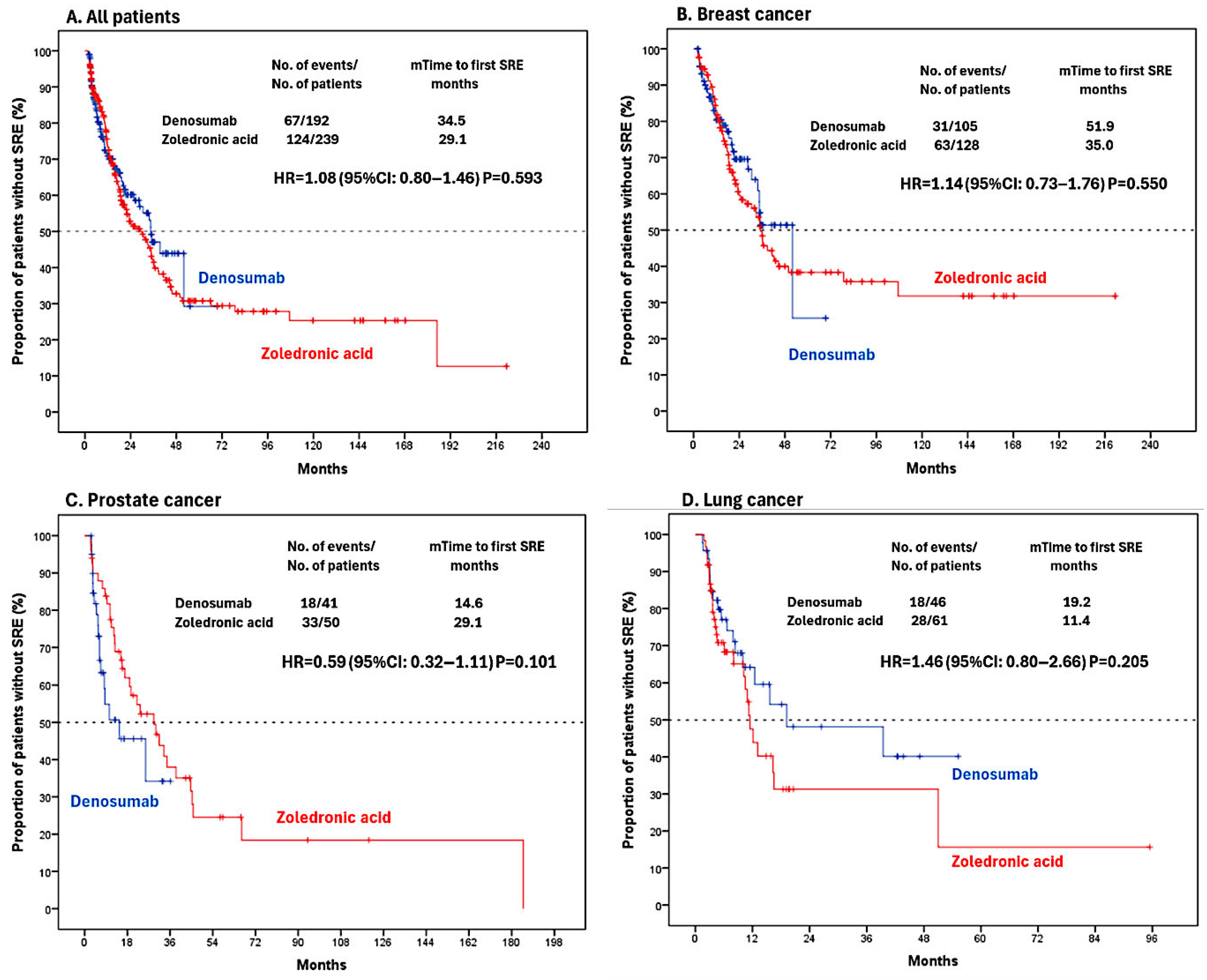 - Lipton, A.; Fizazi, K.; Stopeck, A.; Henry, D.; Yardley, D.; Costa, L.; Brown, J.; Smith, M.; Saad, F.; Body, J.J.; et al. Comparative safety analysis of denosumab versus zoledronic acid. J. Clin. Oncol. 2022, 40, 1650–1660. [Google Scholar]
