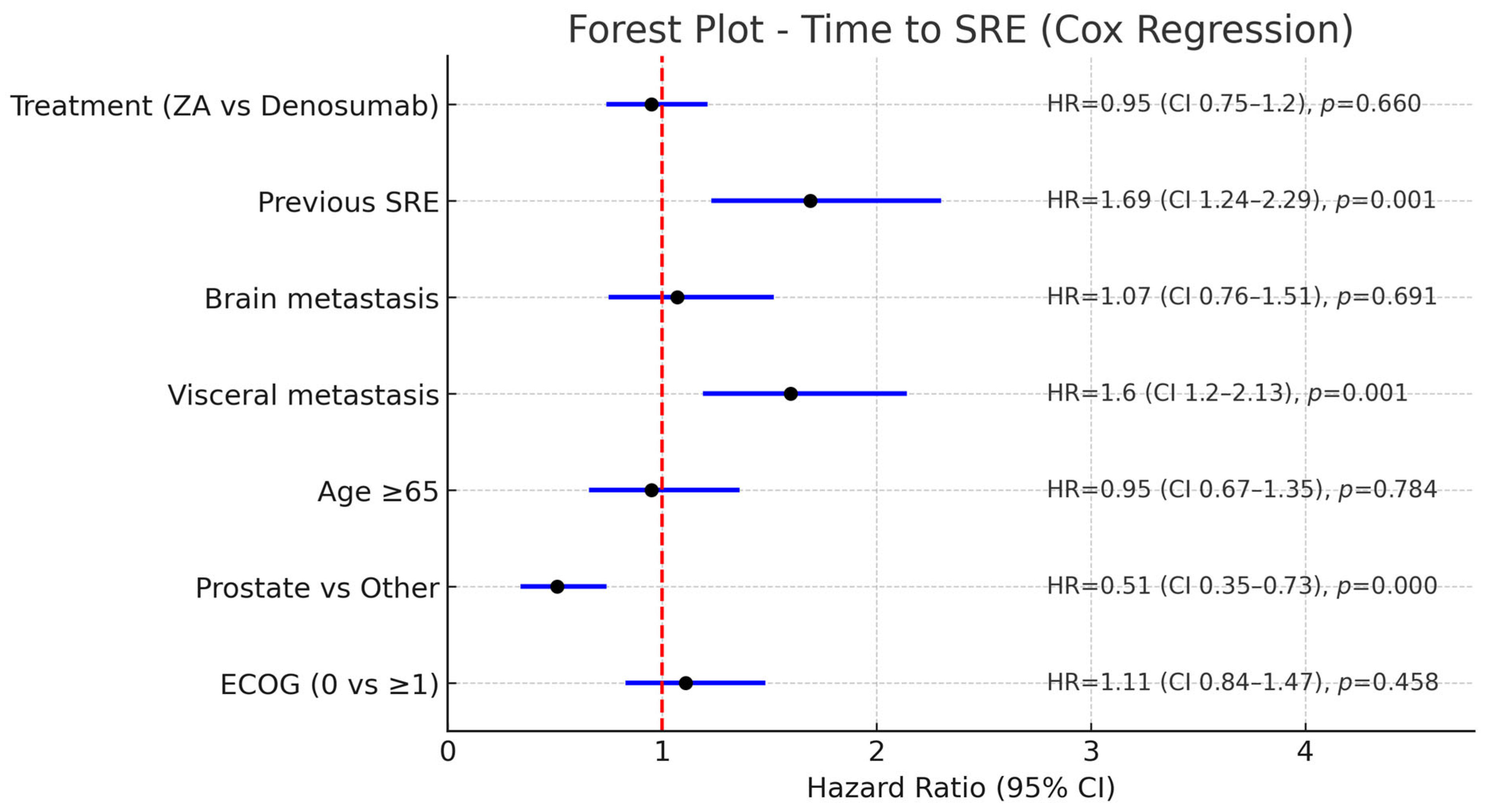| Variables | SRE (+) | SRE (−) | Univariate | p | Multivariate | p | |