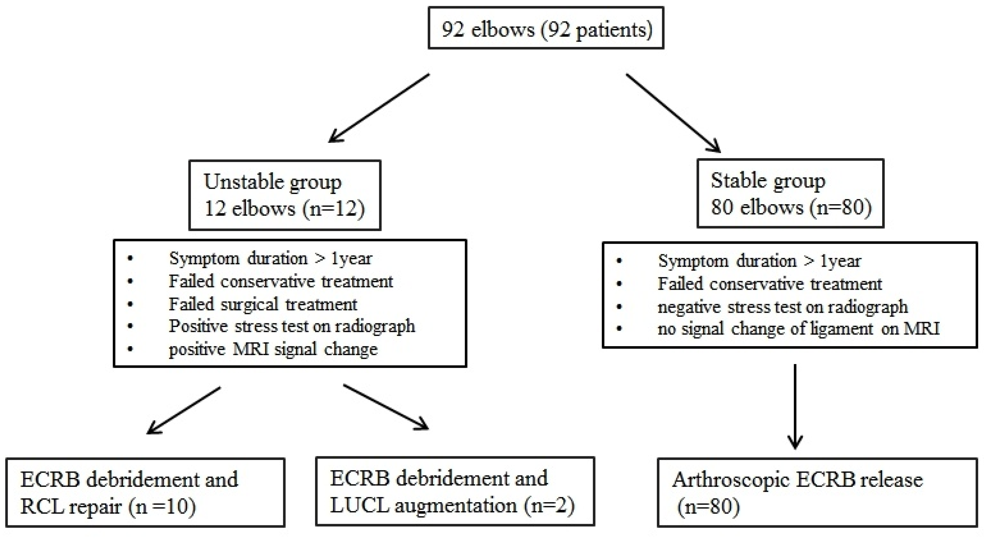 - Clinical and radiologic diagnosis of chronic lateral epicondylitis.