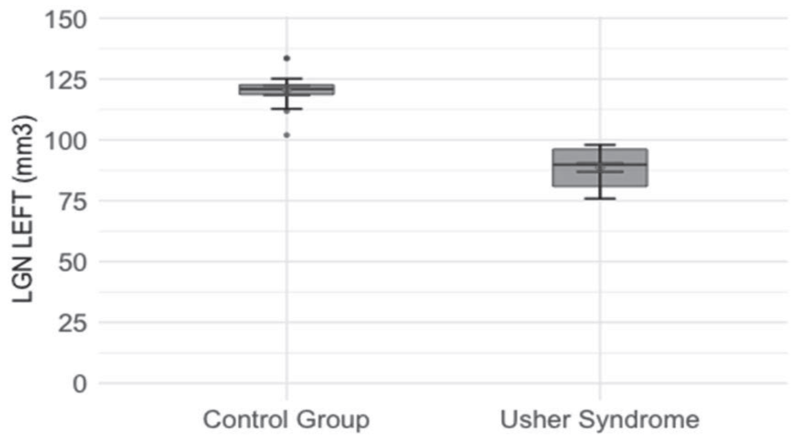 - Jonak, K.; Krukow, P.; Jonak, K.E.; Radzikowska, E.; Baj, J.; Niedziałek, A.; Symms, M.; Stępniewski, A.; Podkowiński, A.; Osuchowska, I.; et al. Decreased Volume of Lateral and Medial Geniculate Nuclei in Patients with LHON Disease-7 Tesla MRI Study. J. Clin. Med. 2020, 9, 2914. [Google Scholar] [CrossRef]