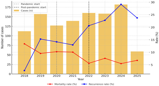 All cases were stratified into three periods: pre-pandemic (March 2018–February 2020), pandemic (March 2020–February 2022), and post-pandemic (March 2022–March 2025).