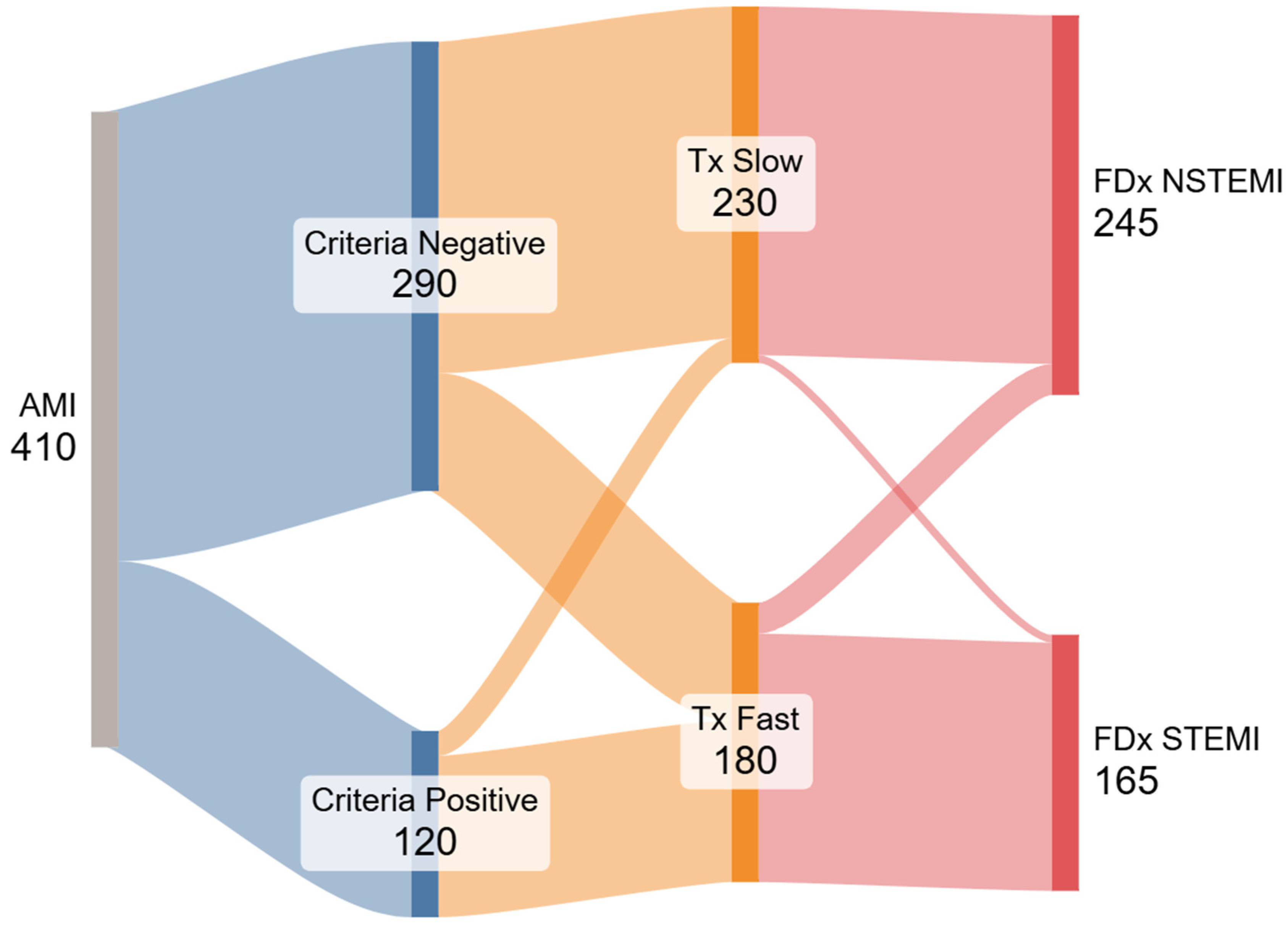 Figure 2) based on our results to visually illustrate the divergence between STEMI criteria, treatment time, and final diagnosis.