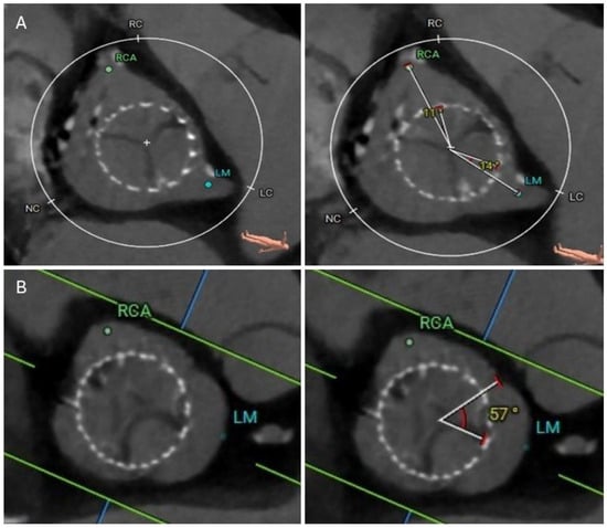 - Tang, G.H.; Spencer, J.; Rogers, T.; Grubb, K.J.; Gleason, P.; Gada, H.; Mahoney, P.; Dauerman, H.L.; Forrest, J.K.; Reardon, M.J.; et al. Feasibility of coronary access following redo-TAVR for Evolut failure: A computed tomography simulation study. Circ. Cardiovasc. Interv. 2023, 16, e013238. [Google Scholar] [CrossRef]