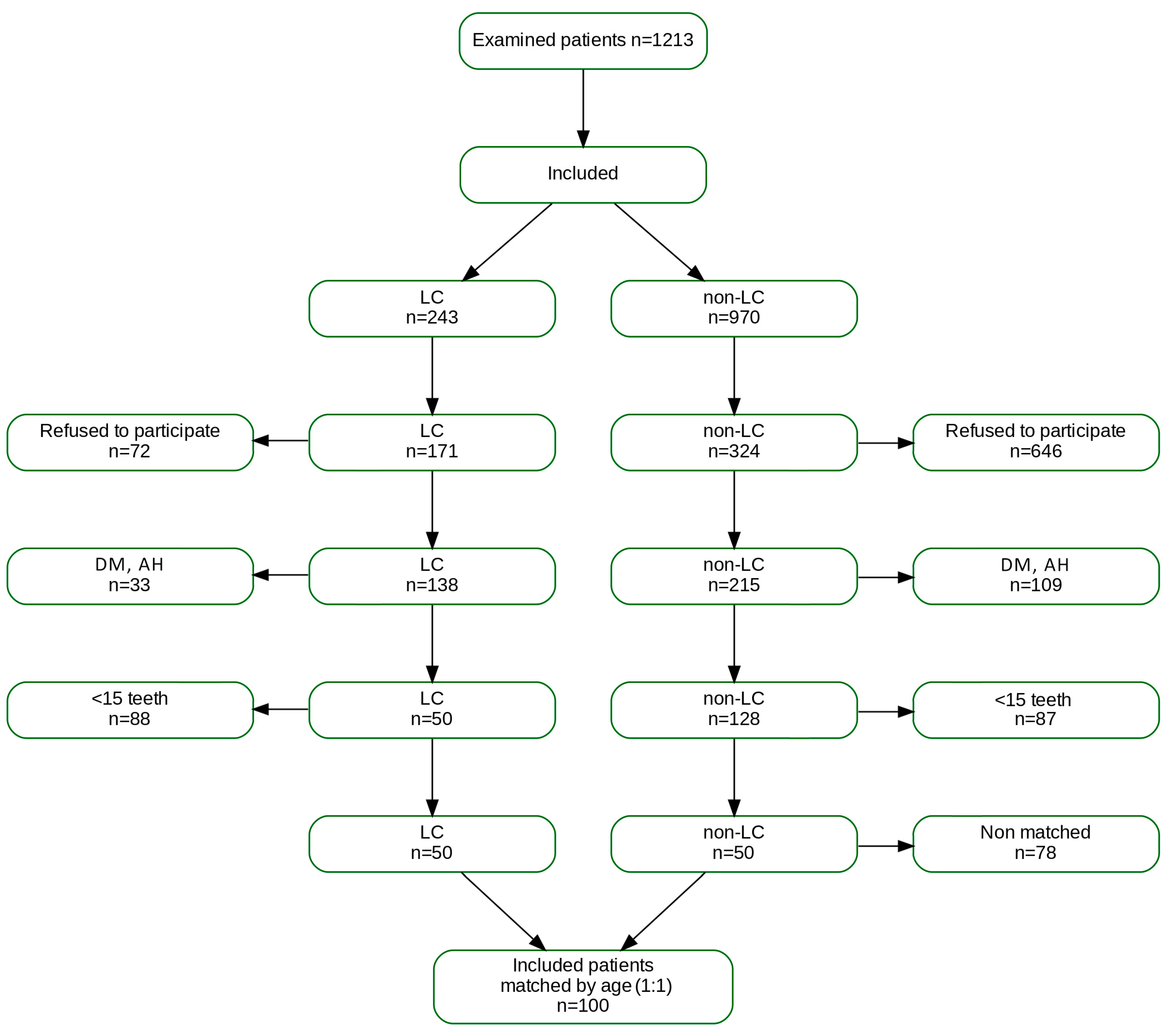 - Costa, F.O.; Lages, E.J.P.; Lages, E.M.B.; Cota, L.O.M. Periodontitis in individuals with liver cirrhosis: A case–control study. J. Clin. Periodontol. 2019, 46, 991–998. [Google Scholar] [CrossRef] [PubMed]