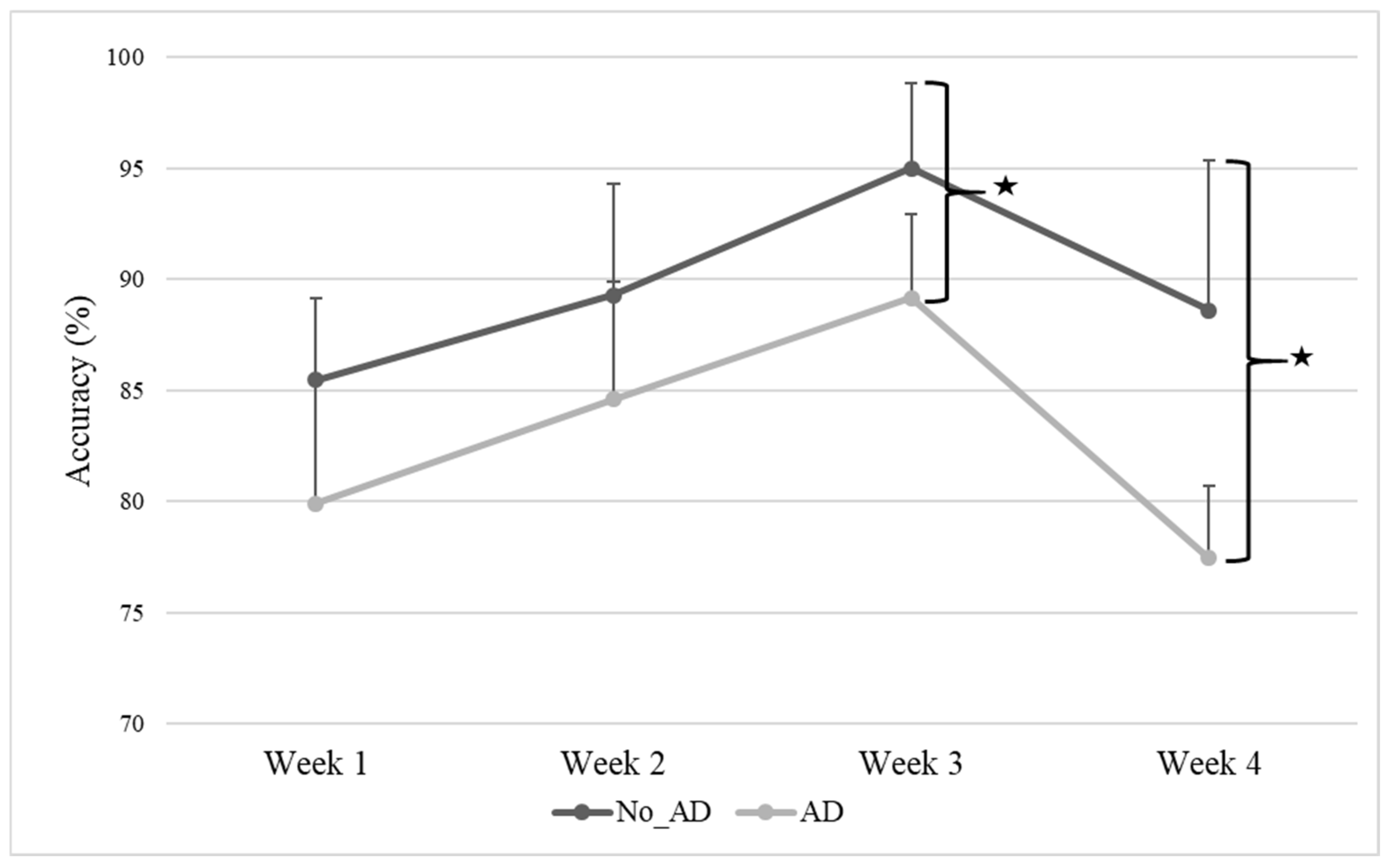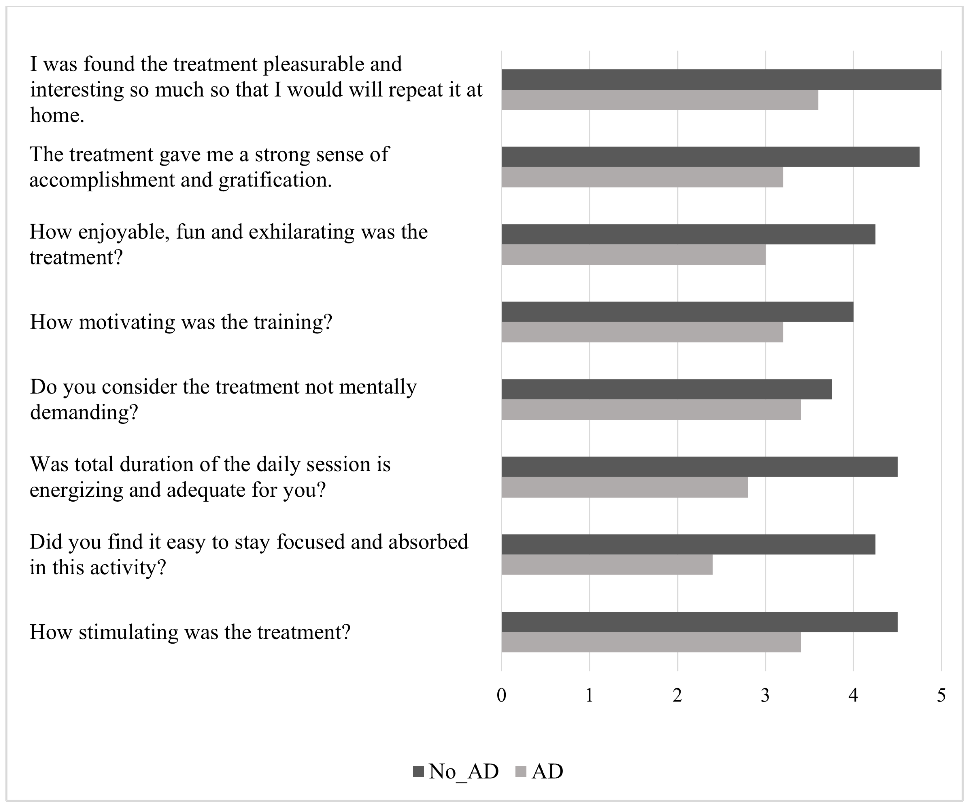 Measures | Total Sample (N = 10) | No_AD Group (N = 4) | AD Group (N = 6) | p Value |
