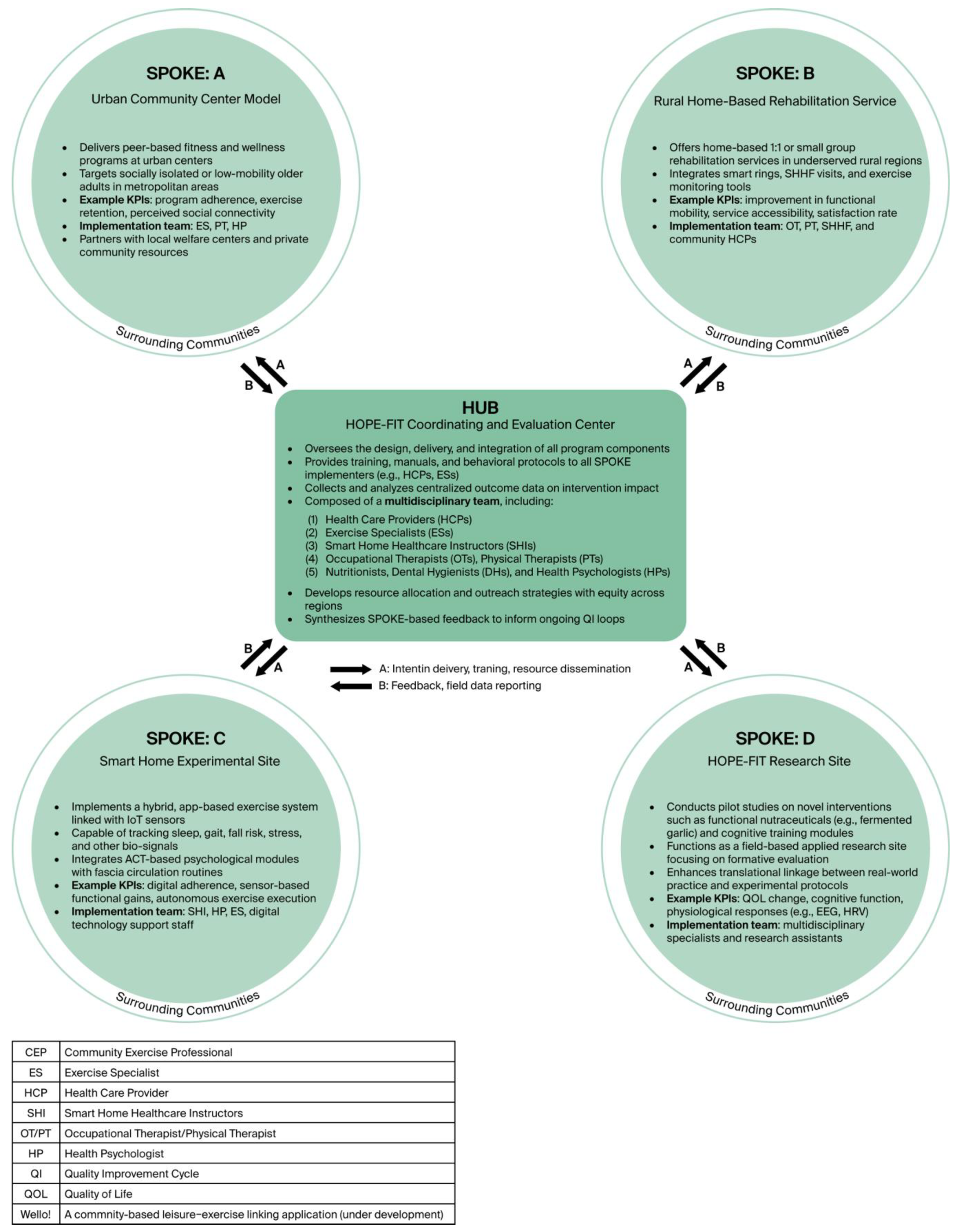 - Reach: Evaluation includes not only the demographic and psychosocial characteristics of older adult participants in HOPE-FIT but also their levels of digital literacy, access to healthcare services, and socioeconomic vulnerabilities.