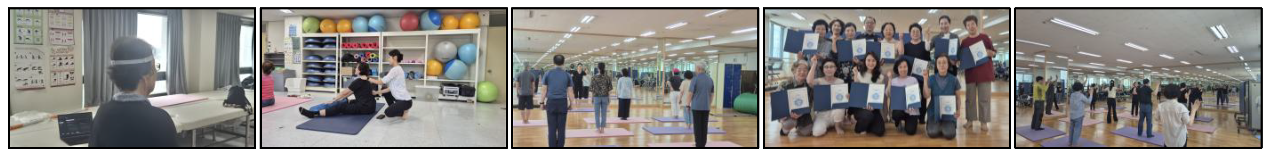 - Composition: Each session integrated fascia-based circulation exercises and Acceptance and Commitment Therapy (ACT)-based psychological recovery tasks. (see Figure 5)