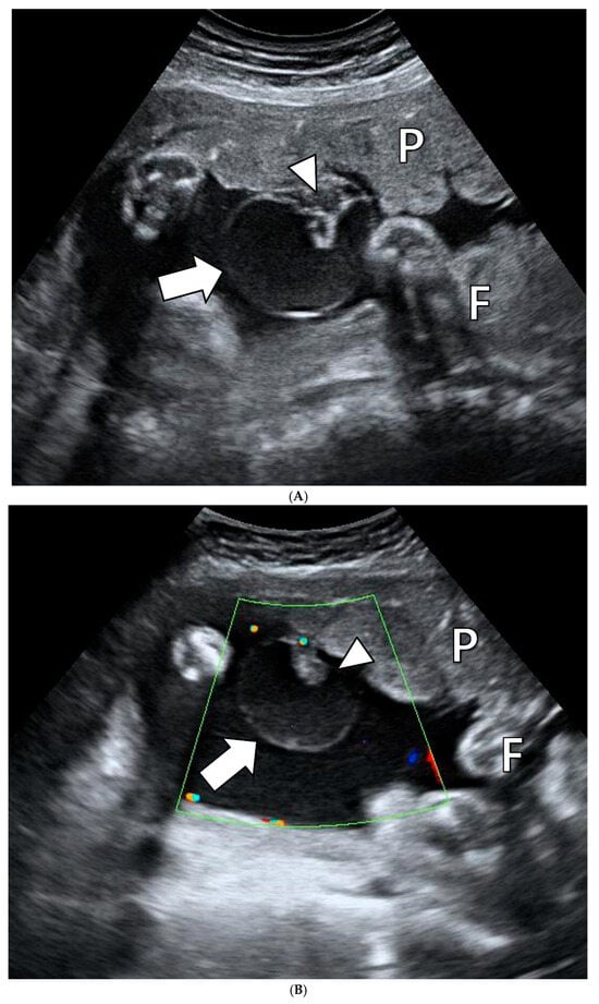- Chansriniyom, N.; Romero, R.; Warintaksa, P.; Meyyazhagan, A.; Promsonthi, P.; Singhsnaeh, A.; Chaemsaithong, P. Prenatal diagnosis of subamniotic placental cysts. Am. J. Obstet. Gynecol. 2025, 233, 135.e1–135.e7. [Google Scholar] [CrossRef] [PubMed]