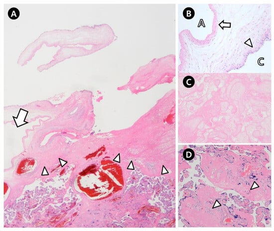- Stolla, M.; Refaai, M.A.; Conley, G.; Spinelli, S.; Casey, A.; Katerji, H.; McRae, H.L.; Blumberg, N.; Phipps, R.; Metlay, L.A.; et al. Placental Chorionic Cyst Fluid Has Prothrombotic Properties and Differs from Amniotic Fluid. Pediatr. Dev. Pathol. 2019, 22, 304–314. [Google Scholar] [CrossRef]