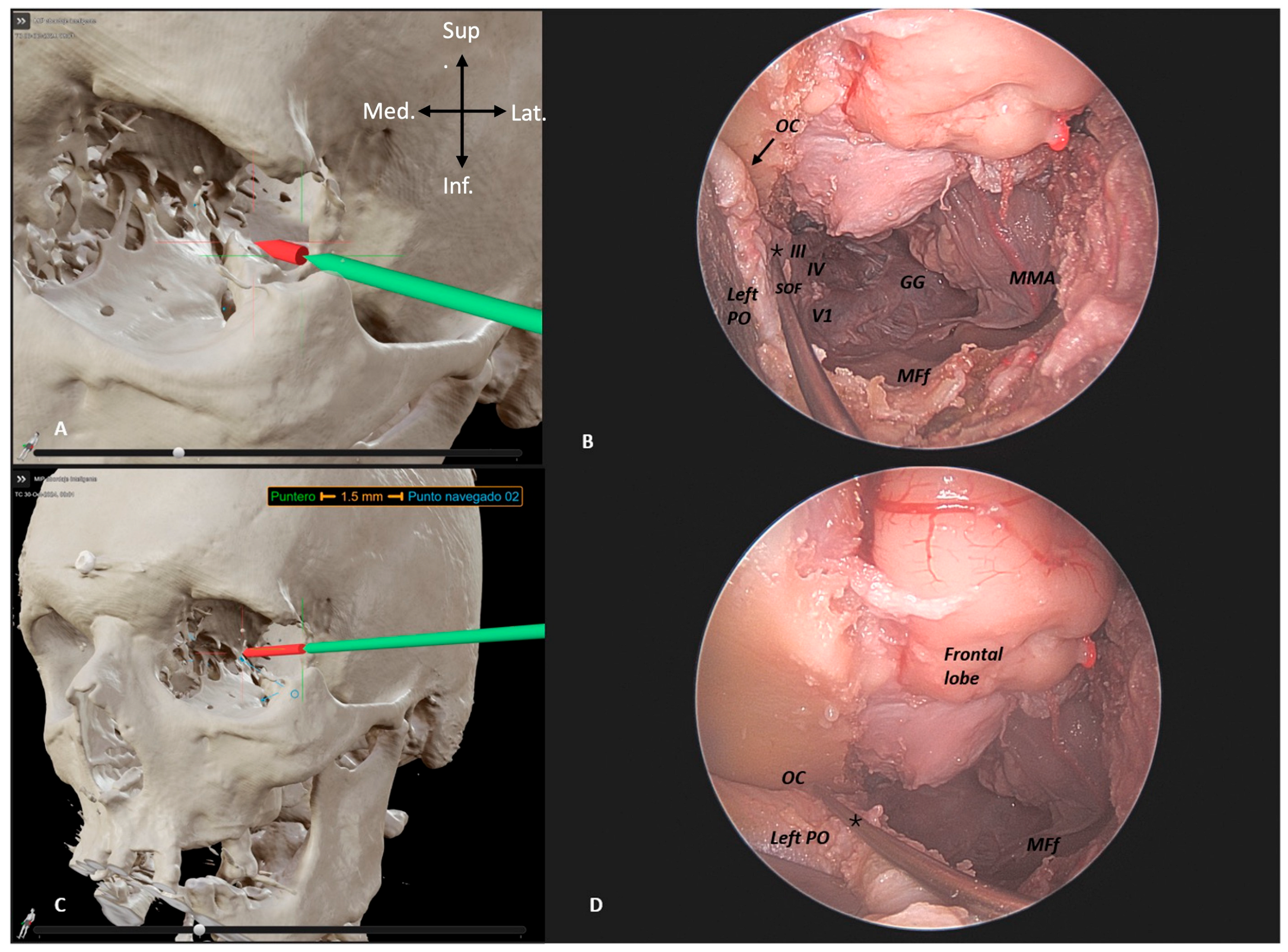 - De Simone, M.; Zoia, C.; Choucha, A.; Kong, D.-S.; De Maria, L. The Transorbital Approach: A Comprehensive Review of Targets, Surgical Techniques, and Multiportal Variants. J. Clin. Med. 2024, 13, 2712. [Google Scholar] [CrossRef]