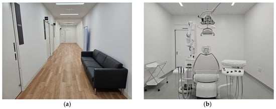 The dental operatory environment was standardized across all sessions, including lighting (neutral white fluorescent), room temperature (25–27 °C), dental instruments, operator, and ambient sound (silence maintained). The walls of both the waiting and treatment rooms were uniformly white, and all windows were blocked to eliminate natural light interference (Figure 1).