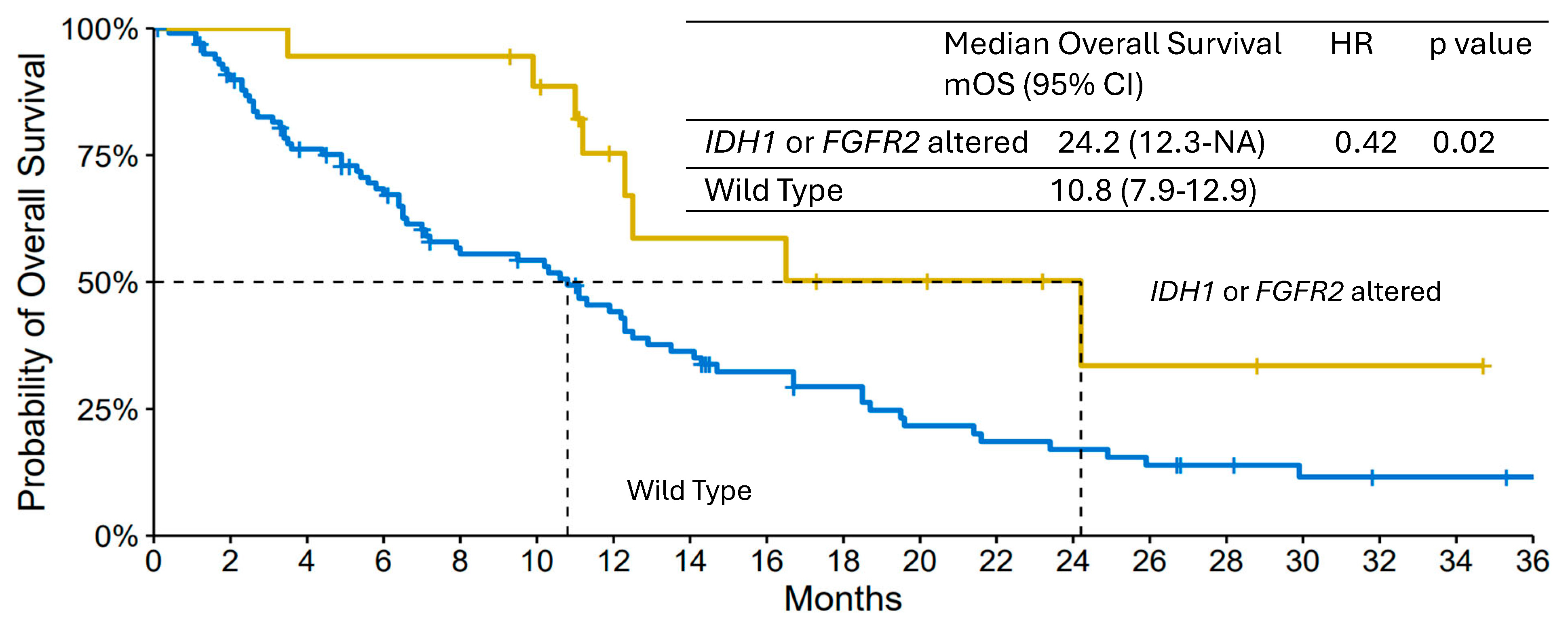 Barbe-Richaud, J.-B.; Moinard-Butot, F.; Cotton, M.; Bigot, C.; Rivière, P.; Belletier, C.; Pencreach, E.; Karouby, D.; Chiappa, P.; Eberst, L.; et al. Outcome of Metastatic Biliary Tract Cancer Harbouring IDH1 or FGFR2 Alterations: A Retrospective Observational Real-World Study from a French Cohort. J. Clin. Med. 2025, 14, 6759. https://doi.org/10.3390/jcm14196759