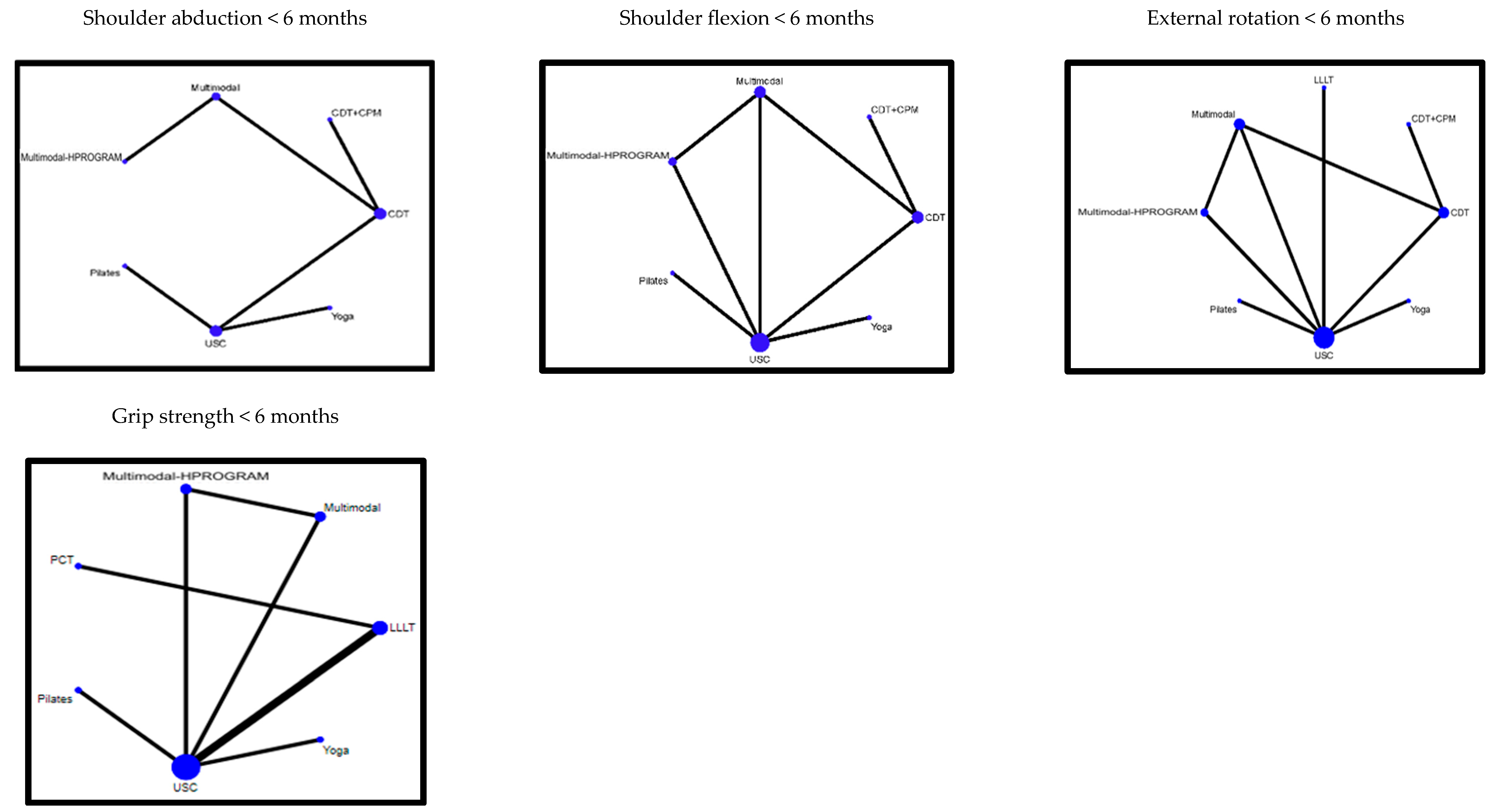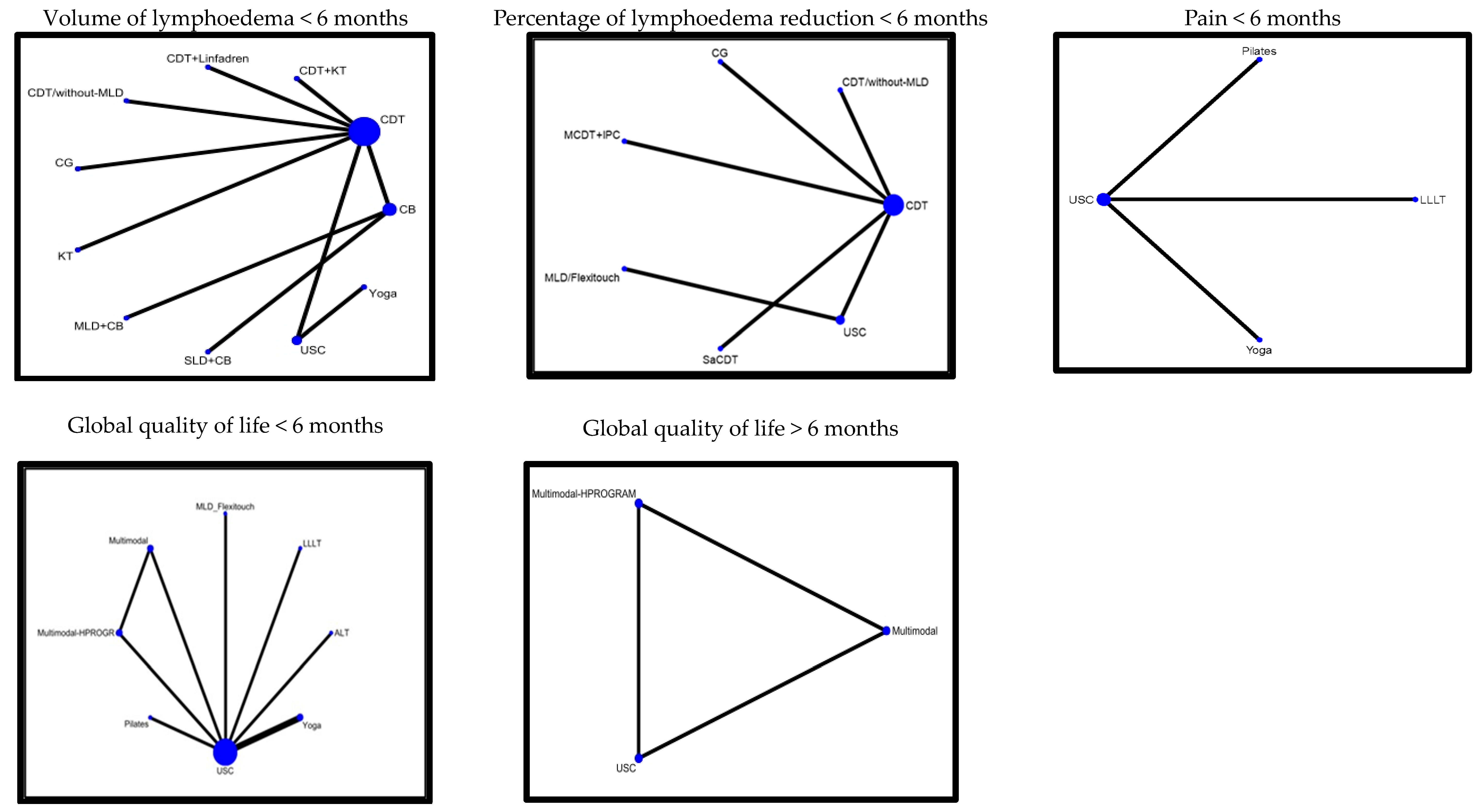 APA StyleAguilera-Eguía, R. A., Serón, P., Gutiérrez-Arias, R., Herrera-Serna, B., Pérez-Galdavini, V., Inostroza-Reyes, G., Yáñez-Baeza, C., Fuentes-Barría, H., Arriagada, H. B., Inostroza-Quiroz, J., Melo-Lonconao, M., Alarcón-Rivera, M., Muñoz-Bustos, M., Pinzón-Bernal, M., López-Soto, P., Roco-Videla, Á., Angarita-Dávila, L., Bonfill, X., & Zaror, C. (2025). Which Physical Therapy Intervention Is Most Effective in Reducing Secondary Lymphedema Associated with Breast Cancer? A Systematic Review and Network Meta-Analysis. Journal of Clinical Medicine, 14(19), 6762. https://doi.org/10.3390/jcm14196762