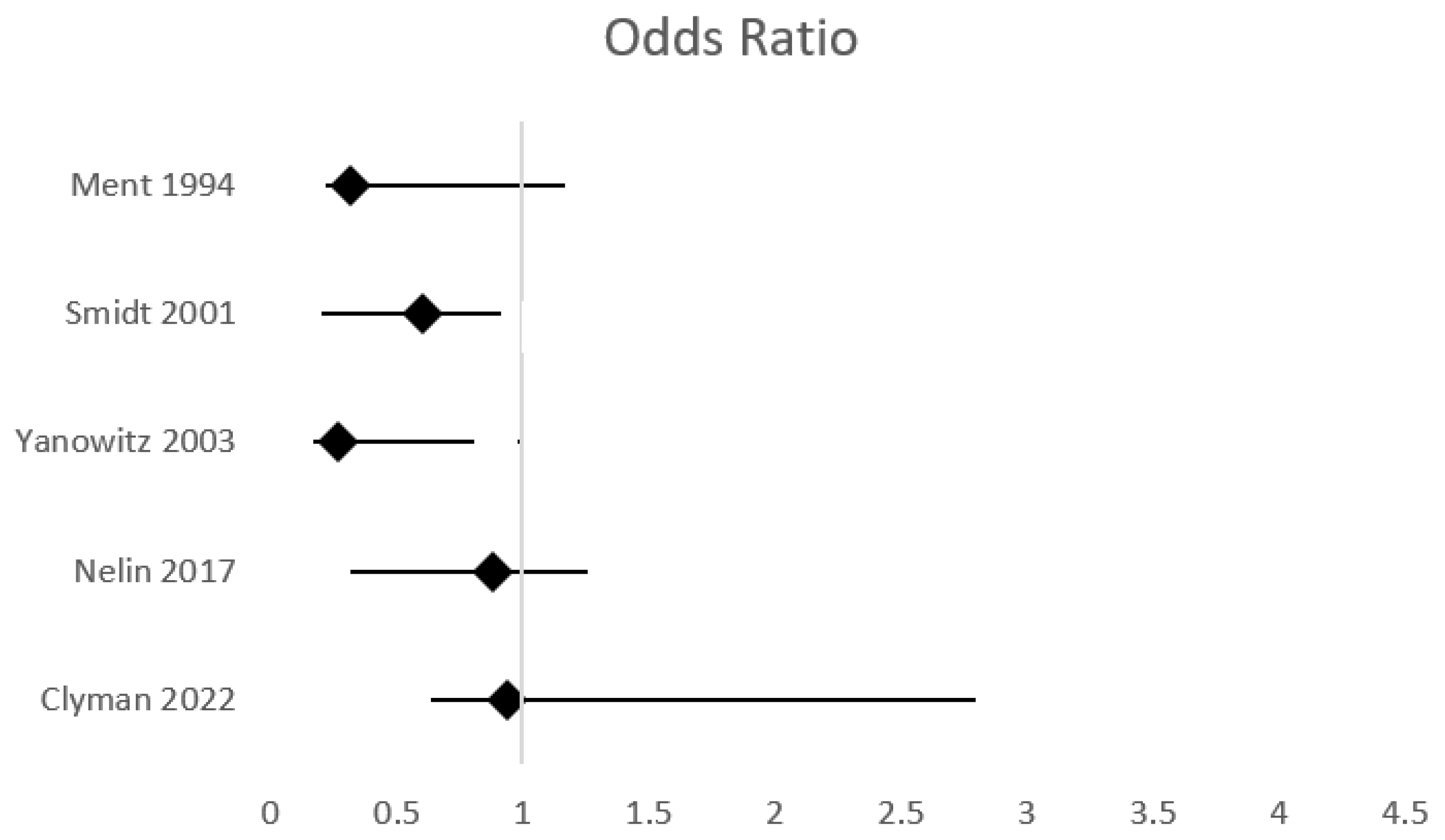 Nelin, 2017 [86] | Retrospective cohort | 671 outborn neonates, GA < 28 weeks | 530 IP-141 control | ND | The effect of IP on mortality and preterm morbidities | IVH any grade: 55% vs. 53%, p = 0.63 sIVH: 21% vs. 23%, p = 0.64 | IVH any grade: 50 sIVH: 50 | IP was not associated with lower IVH rates IP was associated with improved survival rates | Retrospective, non-randomized Only neonates transferred to a level IV NICU Prolonged recruitment IP protocols differed in different centers |