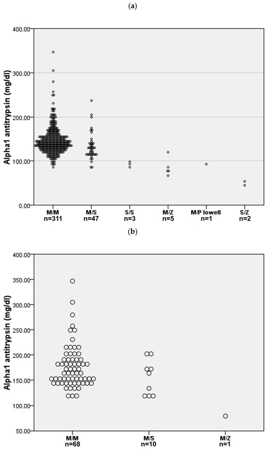 - Ersöz, H.; Torres-Durán, M.; Turner, A.M.; Tanash, H.; Rodríguez García, C.; Corsico, A.G.; López-Campos, J.L.; Miravitlles, M.; Clarenbach, C.F.; Chapman, K.R.; et al. Sex-differences in alpha-1 antitrypsin deficiency: Data from the earco registry. Arch. Bronconeumol. 2025, 61, 22–30. [Google Scholar] [CrossRef]