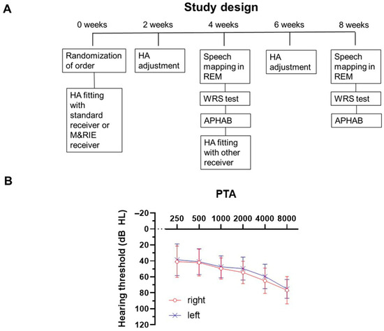 Participants were randomly assigned to one of the two groups to determine the initial order of receiver fitting–either the standard or M&RIE receiver. A crossover design was implemented to ensure that each participant experienced both receiver types during the study period. Figure 1A shows a schematic of the study protocol.