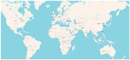 Publications on the use of AI in detecting MI have increased steadily over recent years, reaching a peak in 2022, reflecting growing interest in AI-based ECG detection of myocardial infarction. China contributed the largest number of publications, while 17% were conducted across multiple countries. The number of publications per country is shown in Figure 2.