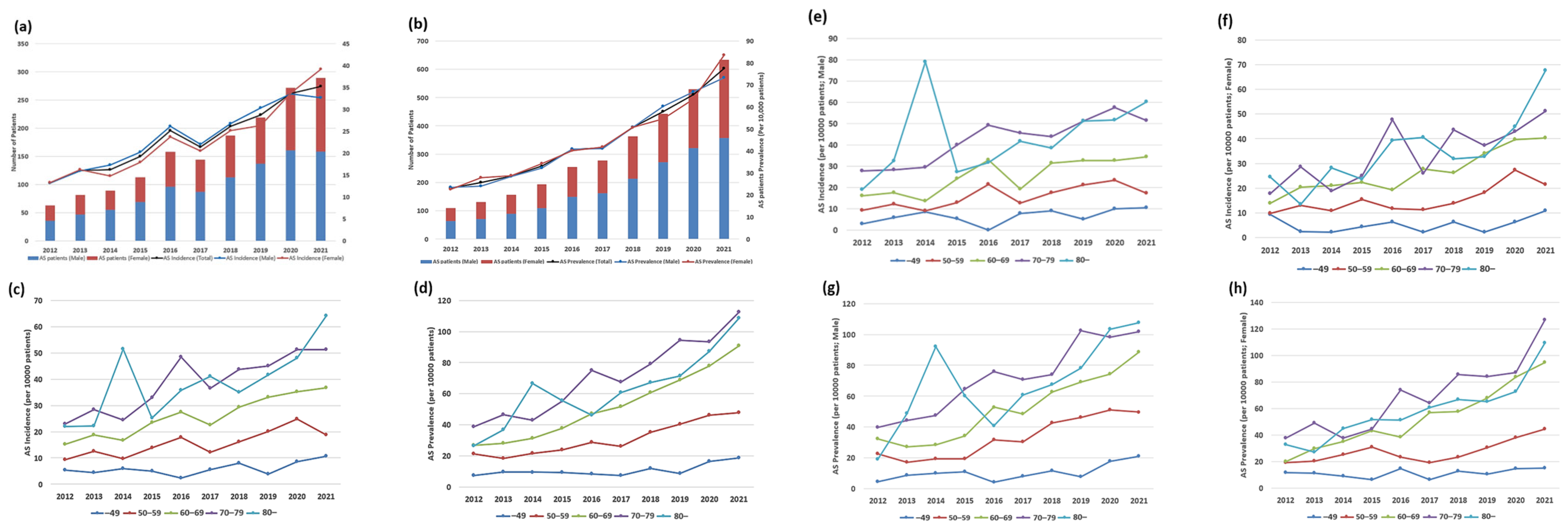 3.2. Temporal Trends in the Incidence and Prevalence of AS Among Patients with ESRD According to Sex and Age