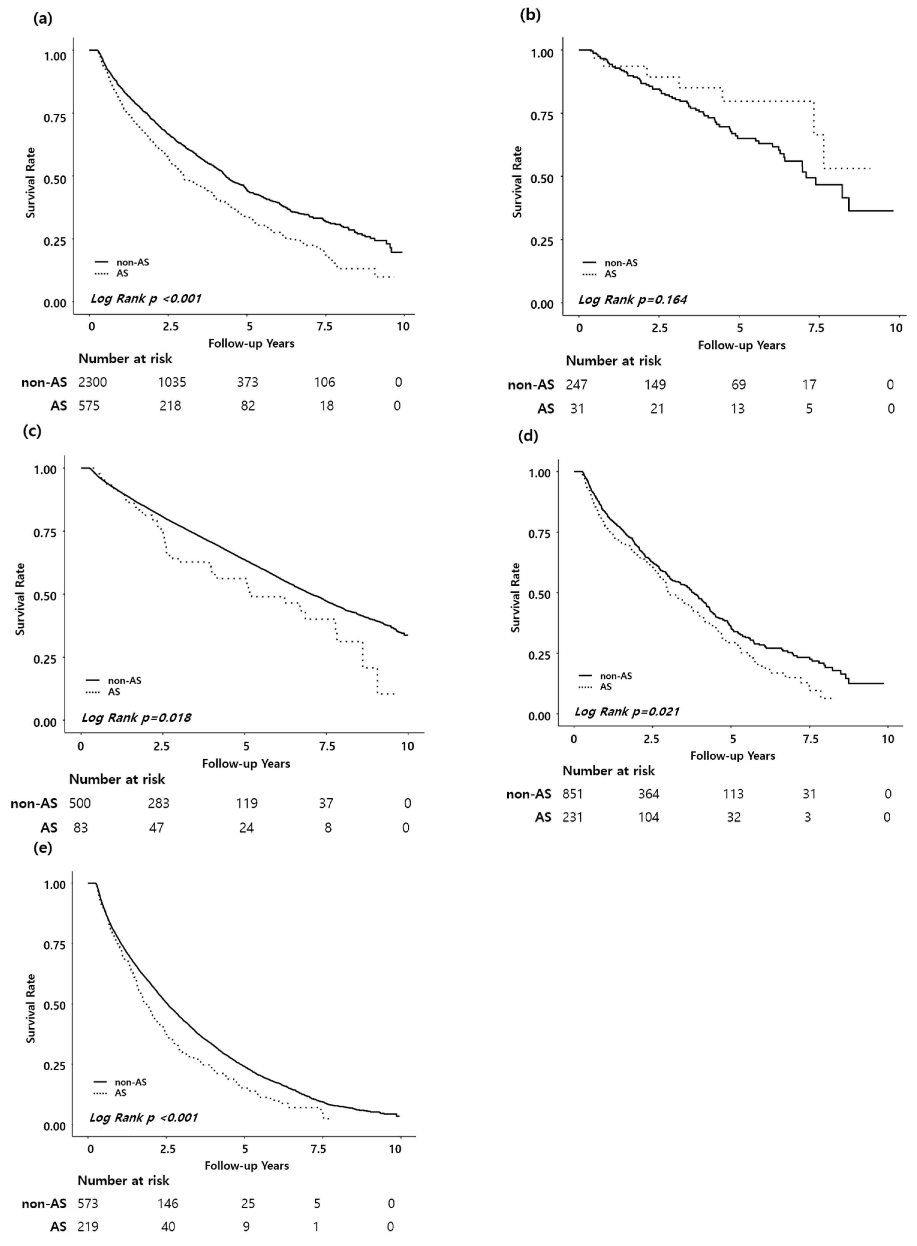 - Ong, J.; Leow, A.; Ching, K.; Goh, F.Q.; Chew, N.W.S.; Kong, W.K.F.; Yeo, T.C.; Sia, C.H.; Poh, K.K. Long-term mortality out comes of southeast Asian patients with aortic stenosis. Eur. Heart. J. 2024, 45, ehae666.3136. [Google Scholar] [CrossRef]