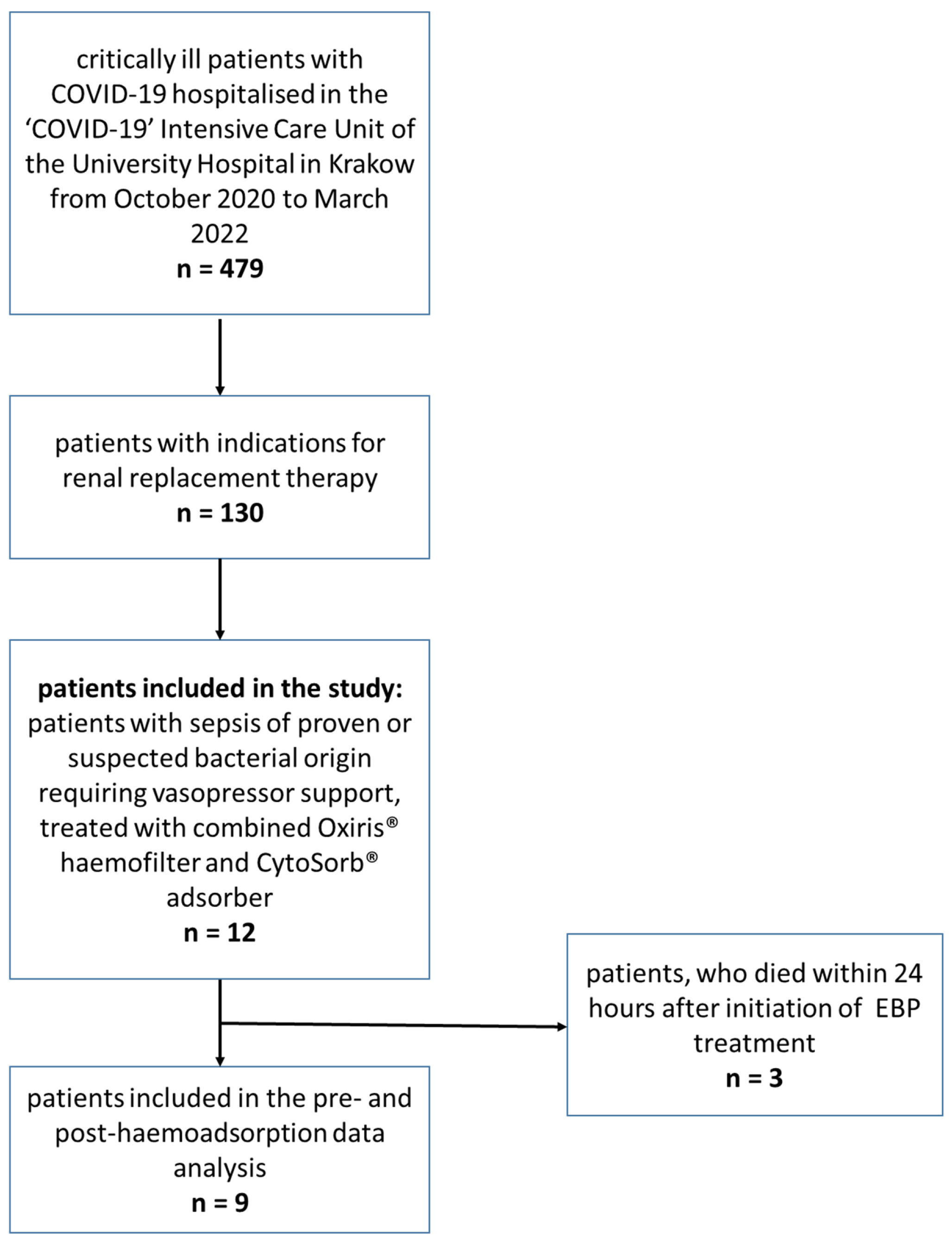 APA StyleWrzosek, A., Drygalski, T., Nowak, Ł., Grabowska, I., Wordliczek, J., Terlecki, M., & Garlicki, J. (2025). Is There a Rationale for Haemoadsorption with Combined Use of CytoSorb® and Oxiris® in Patients with Underlying Viral Infection and Secondary Bacterial Sepsis? Journal of Clinical Medicine, 14(19), 6931. https://doi.org/10.3390/jcm14196931