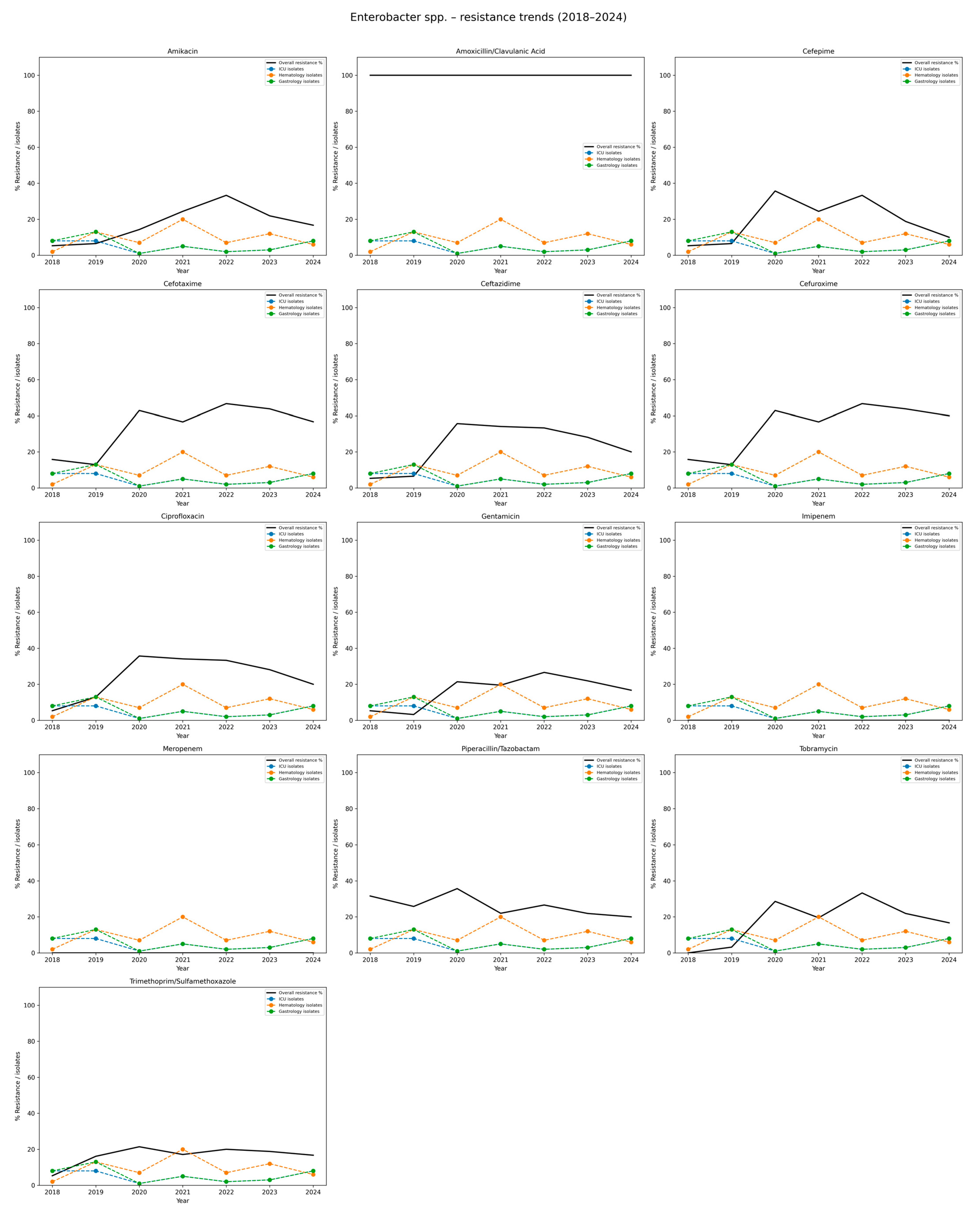 Enterobacter spp. | all | 19 | 31 | 14 | 41 | 15 | 32 | 30 |