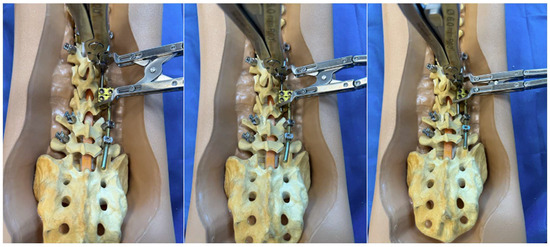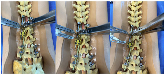 To provide clear visualization of the construct-to-construct setup, we used commercially available synthetic sawbone spine models (Sawbones, Vashon, WA, USA). These models were instrumented according to the described technique, and standardized photographs were obtained to create step-by-step illustrative figures.