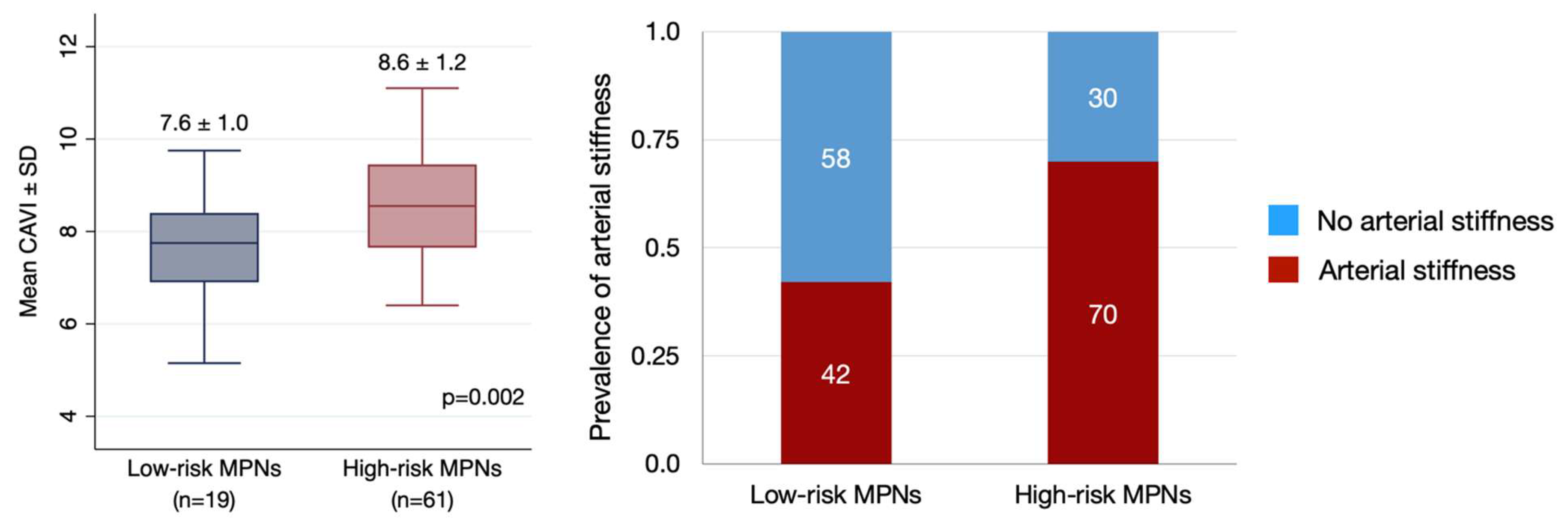 Prevalence of Arterial Stiffness Determined by Cardio-Ankle Vascular Index in Myeloproliferative Neoplasms †