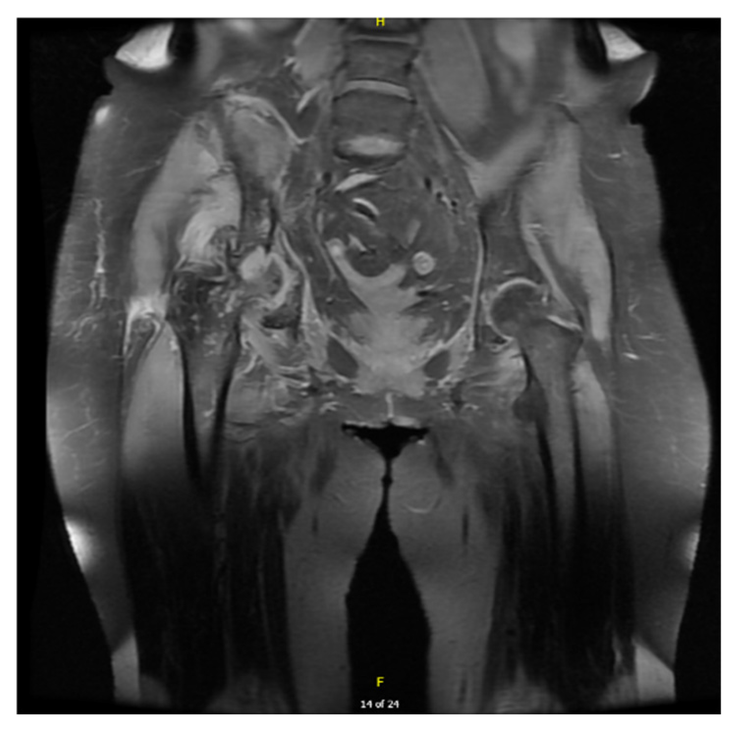Chicago/Turabian StylePetrijan, Timotej, Marija Menih, and Saša Gselman. 2025. "A Puzzling Pair: Flail Leg Syndrome with Myokymia and Avascular Hip Necrosis—Case Study and Systematic Literature Review" Journal of Clinical Medicine 14, no. 19: 6955. https://doi.org/10.3390/jcm14196955