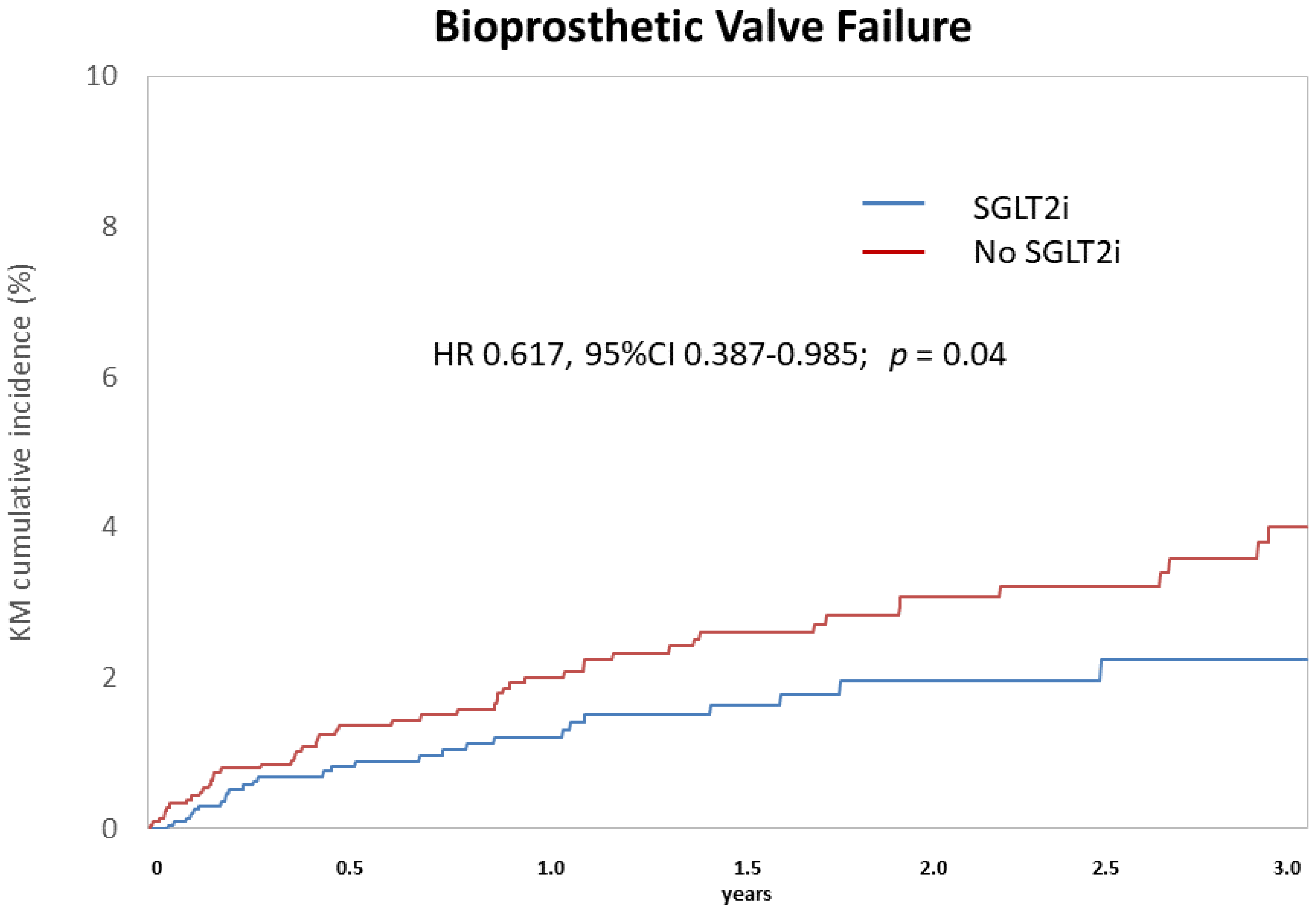 - In patients undergoing TAVR, the use of SGLT2 inhibitors was associated with lower risks of mortality and bioprosthetic valve failure. These findings suggest a potential disease-modifying role for SGLT2 inhibitors in this population.