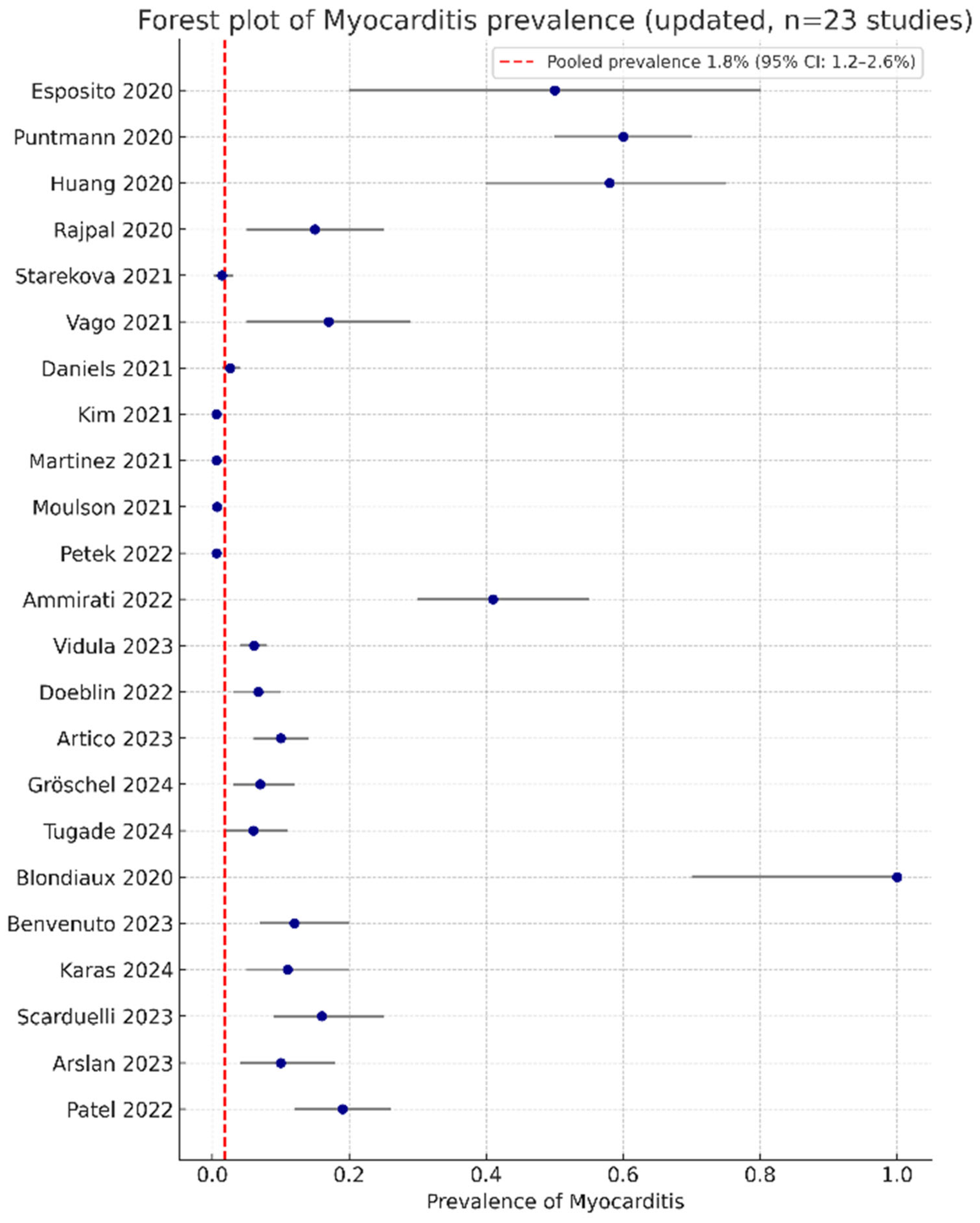 3.3. Pooled Prevalence of Myocarditis