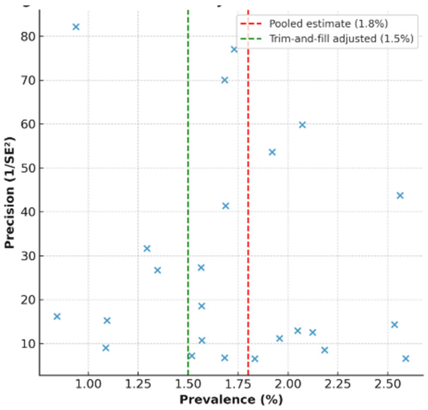 - Vaccination Status: Vaccinated cohorts (14 studies, n = 15,672; e.g., Gröschel [24], Tugade [25], andDoeblin [31]) had a prevalence of 1.1% (95% CI: 0.7–1.6%) vs. 2.7% (95% CI: 1.9–3.7%; e.g., Ammirati [21], and Patel [37]) in unvaccinated cohorts (p = 0.03), supporting vaccination’s protective role.