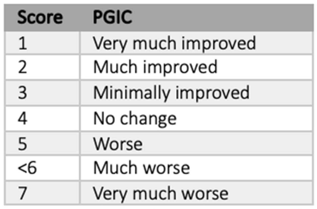 PGI-C score | 2 ± 1 | 3 ± 1 | 0.082 |
