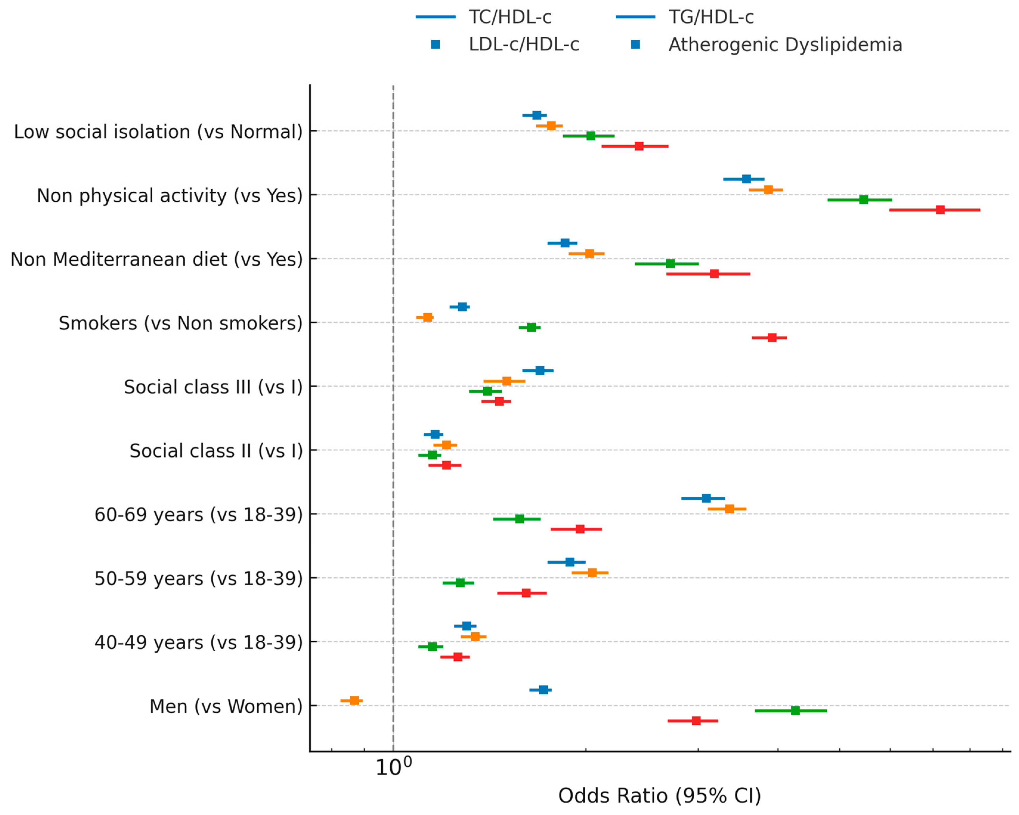 Determinants of Atherogenic Dyslipidemia and Lipid Ratios: Associations with Sociodemographic Profile, Lifestyle, and Social Isolation in Spanish Workers
