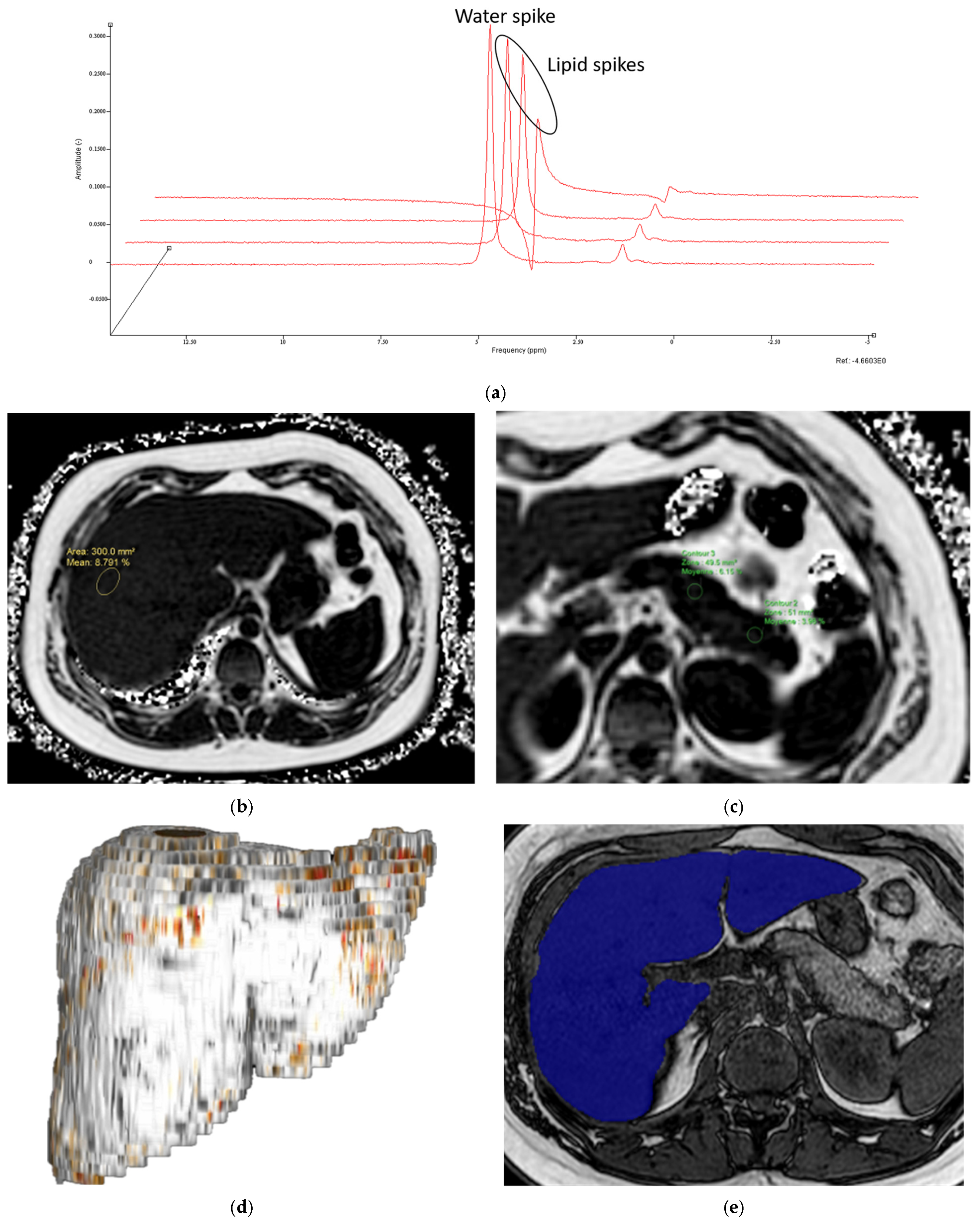 - Gu, J.; Liu, S.; Du, S.; Zhang, Q.; Xiao, J.; Dong, Q.; Xin, Y. Diagnostic value of MRI-PDFF for hepatic steatosis in patients with non-alcoholic fatty liver disease: A meta-analysis. Eur. Radiol. 2019, 29, 3564–3573. [Google Scholar] [CrossRef]