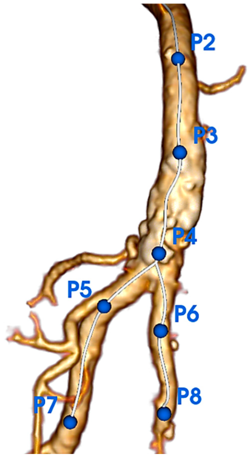 - Tijani, Y.; Burgaud, M.; Hamel, A.; Raux, M.; Nasr, B.; Gouëffic, Y. The Common Femoral Artery Is a Fixed Arterial Segment. Ann. Vasc. Surg. 2021, 73, 51–54. [Google Scholar] [CrossRef] [PubMed]