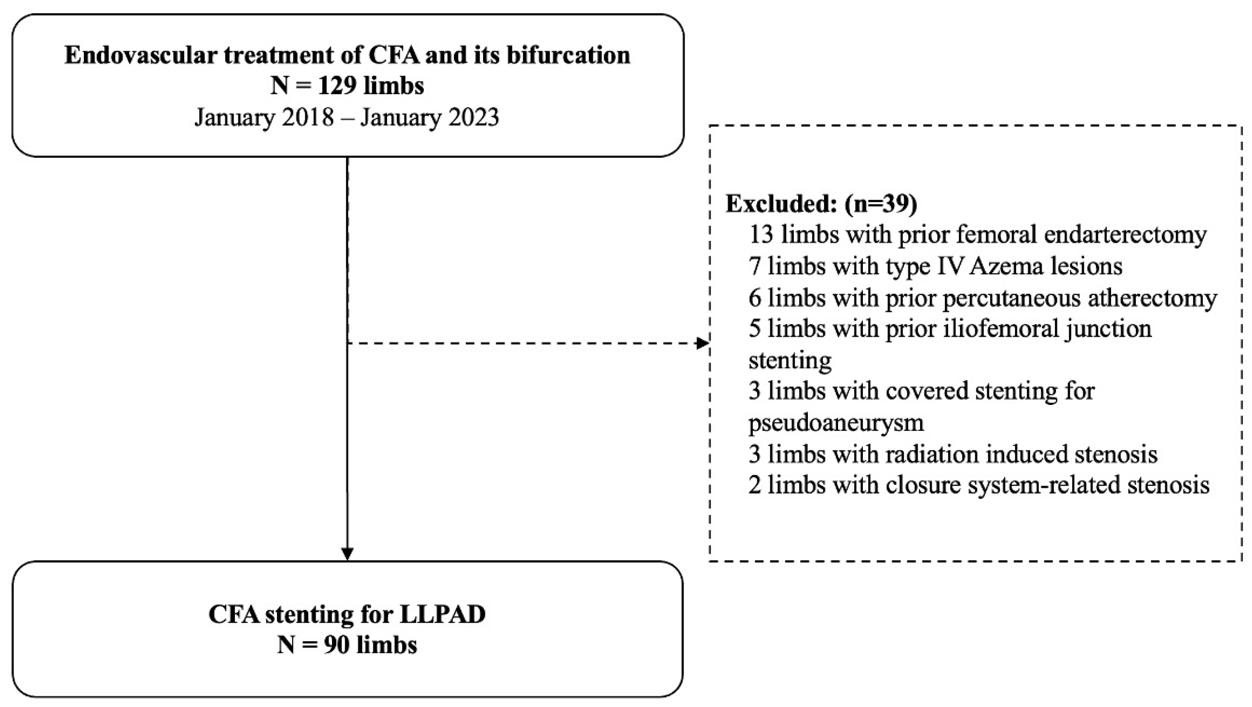 - Hashimoto, T.; Yamamoto, S.; Kimura, M.; Sano, M.; Sato, O.; Deguchi, J. Long-Term Outcomes following Common Femoral Endarterectomy. J. Clin. Med. 2022, 11, 6873. [Google Scholar] [CrossRef]