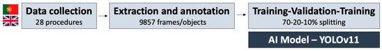The dataset included 9857 annotated frames containing biopsy-confirmed lesions, from 28 vulvoscopies (9 from Centro Materno Infantil do Norte, 19 from Liverpool Women’s NHS Foundation). Figure 3 schematizes the evaluation of main outcomes through the training and validation process.