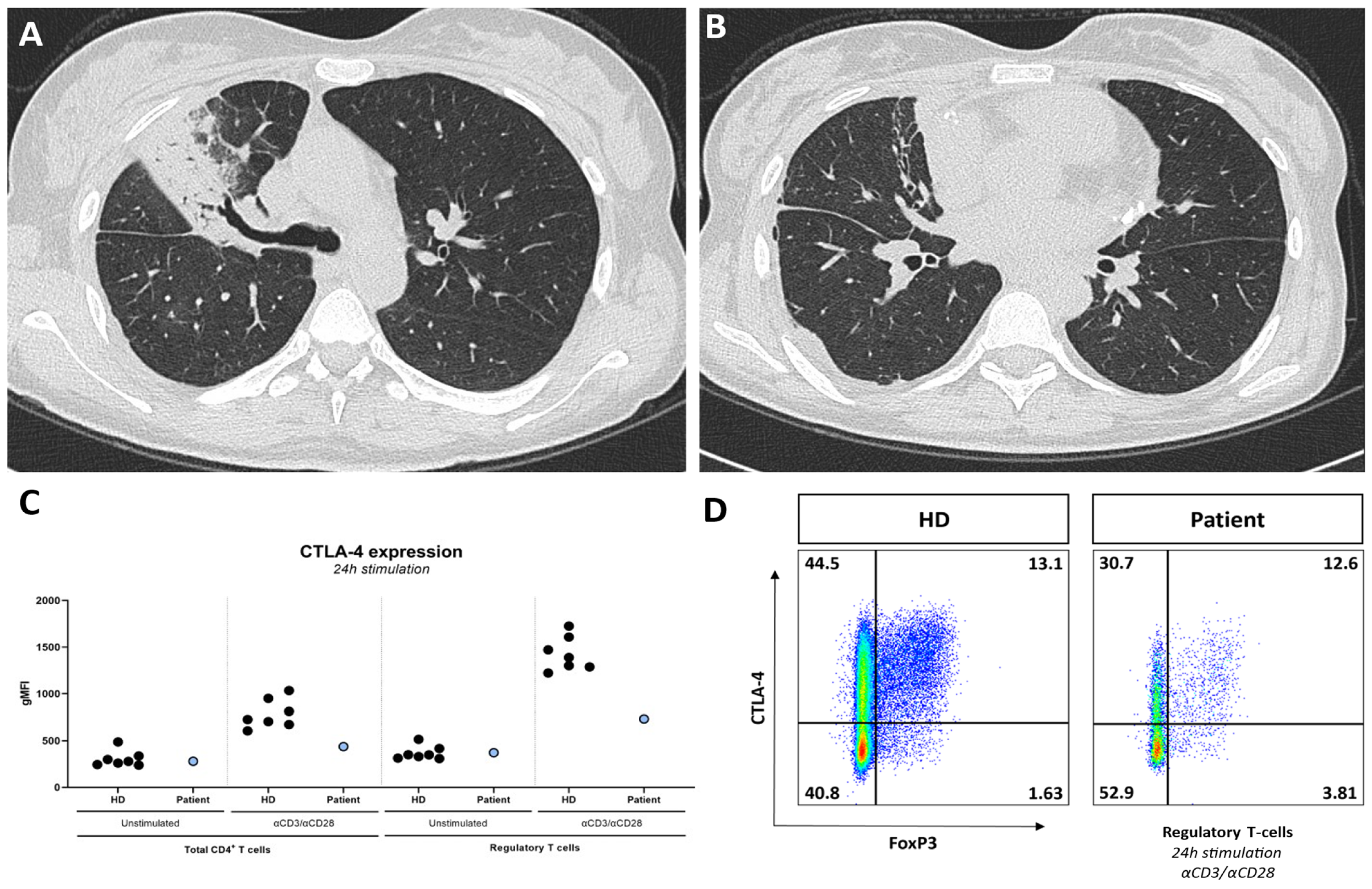 - Tromp, S.A.M.; van Leeuwen, E.M.M.; Jansen, M.H.; Kwakernaak, A.J.; Bomers, M.K.; Jonkers, R.E.; van Spaendonk, R.M.L.; Kuijpers, T.W.; de Bree, G.J. Novel mutations in CTLA-4 and LRBA immune dysregulation: Reduced CTLA-4 expression with normal expression of co-stimulatory surface molecules. Clin. Immunol. 2025, 280, 110565. [Google Scholar] [CrossRef] [PubMed]