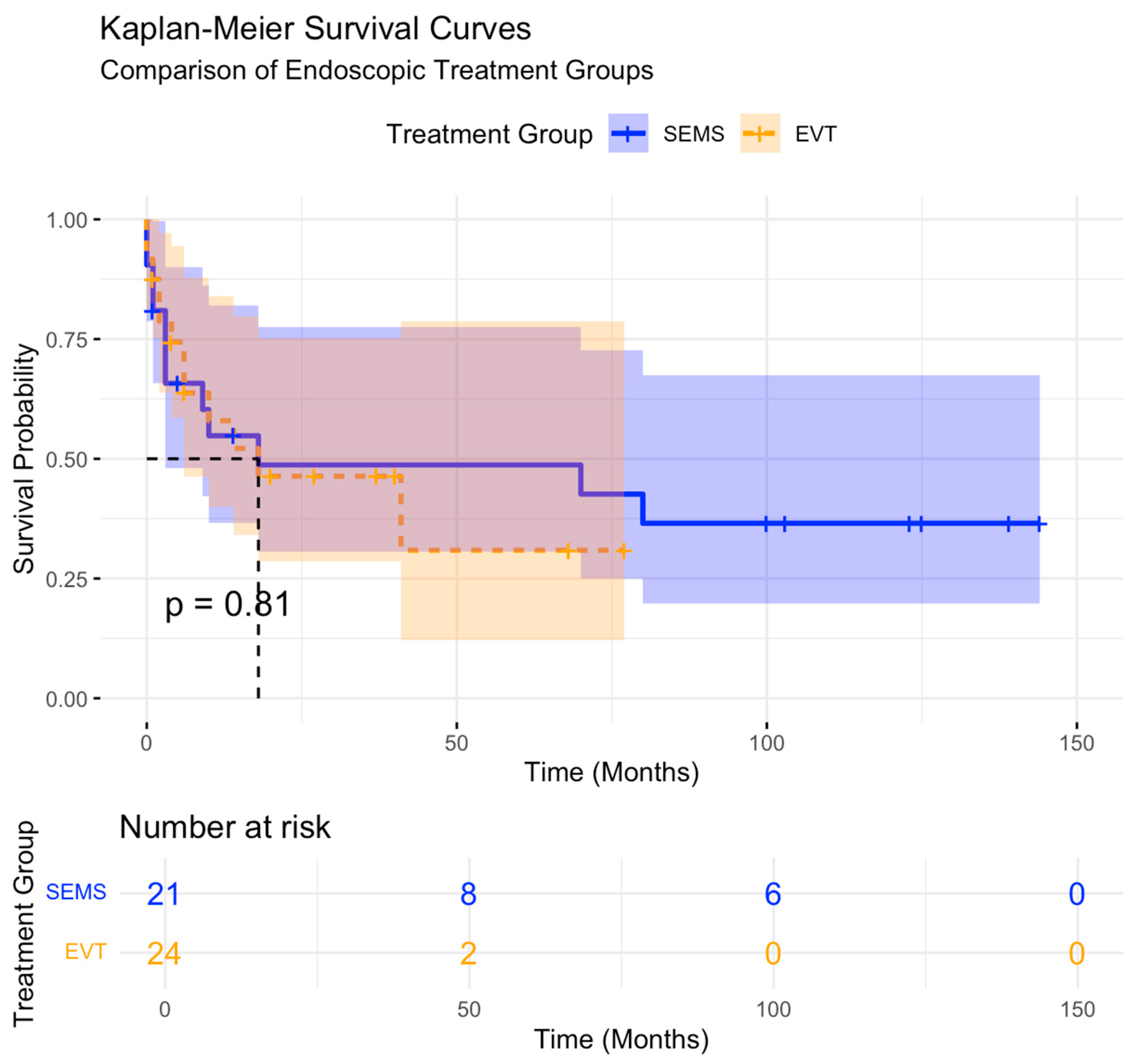 Total (n = 45) | SEMS (n = 22) | EVT (n = 23) | p-Value | |