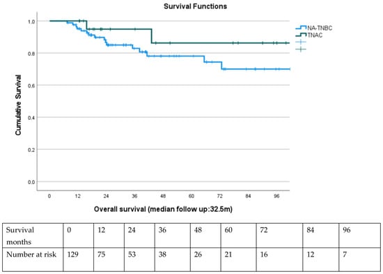 Kaplan–Meier curves showing the difference in survival between TNAC and NA-TNBC.