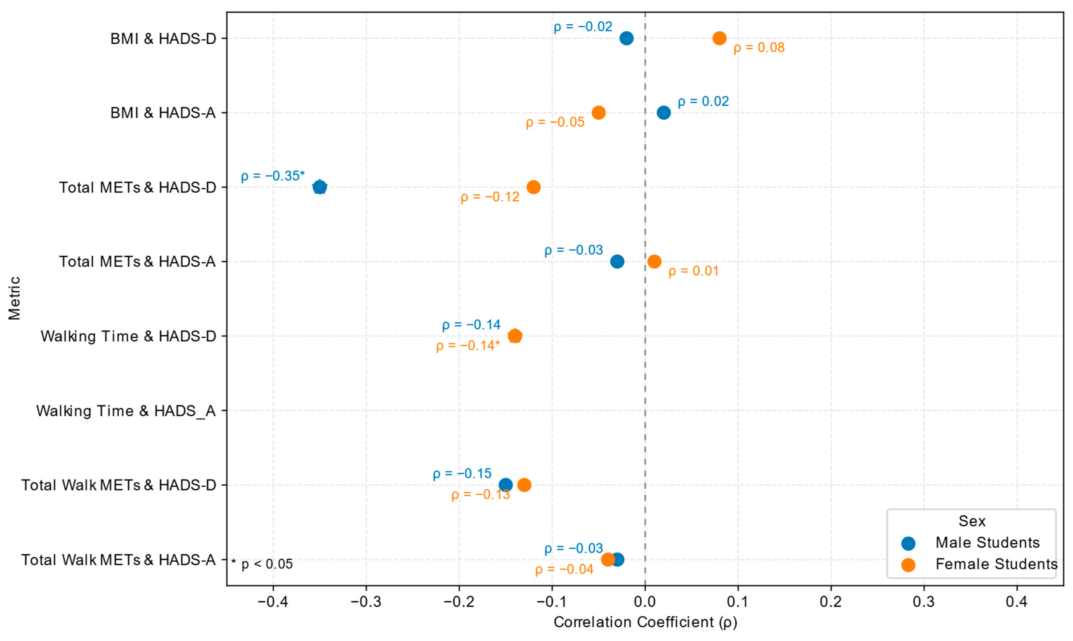 Current evidence supports sex-specific recommendations for physical activity to support mental health in students. Multiple large-scale studies demonstrate that for female students, walking time and lower-intensity activities are more consistently associated with fewer depressive symptoms, while for male students, higher-intensity physical activity (such as moderate-to-vigorous exercise or activities with higher total metabolic equivalents) shows a stronger inverse relationship with depressive symptoms [