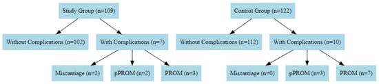 Figure 1. Flowchart of pregnancies and prenatal complications in the study and control groups.