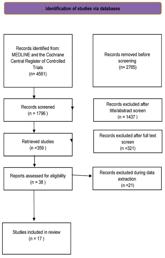 Among the 4803 studies reviewed, 17 (Figure 1) met the inclusion criteria.
