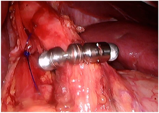 - Salvador, R.; Costantini, M.; Capovilla, G.; Polese, L.; Merigliano, S. Esophageal penetration of the magnetic sphincter augmentation device: History repeats itself. J. Laparoendosc. Adv. Surg. Tech. A 2017, 27, 834–838. [Google Scholar] [CrossRef]