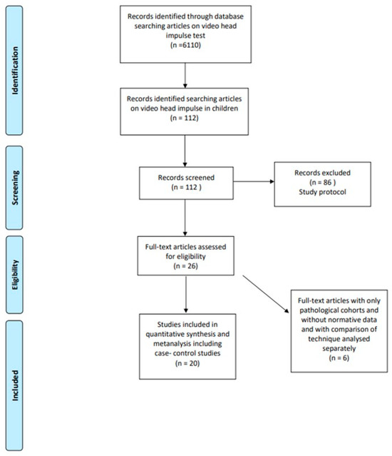 Specific pathological cohorts (for example vHIT in children with sensorineural hearing loss, cochlear implants, specific genetic disorders), abstracts, series with less than 10 subjects, review articles, and case reports were excluded.